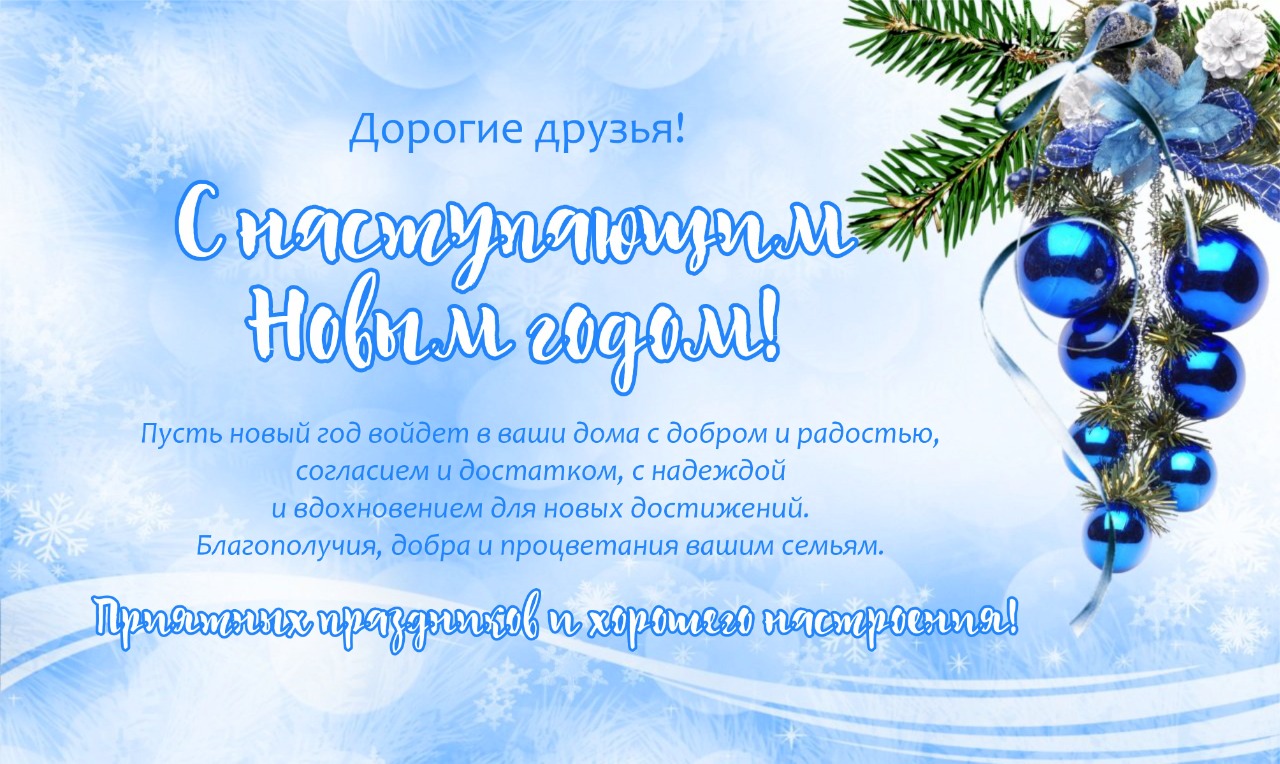 Пусть новый год войдет в ваши дома с добром и радостью, согласием и достатком, с надеждой и вдохновением для новых достижений. Благополучия, добра и процветания вашим семьям.