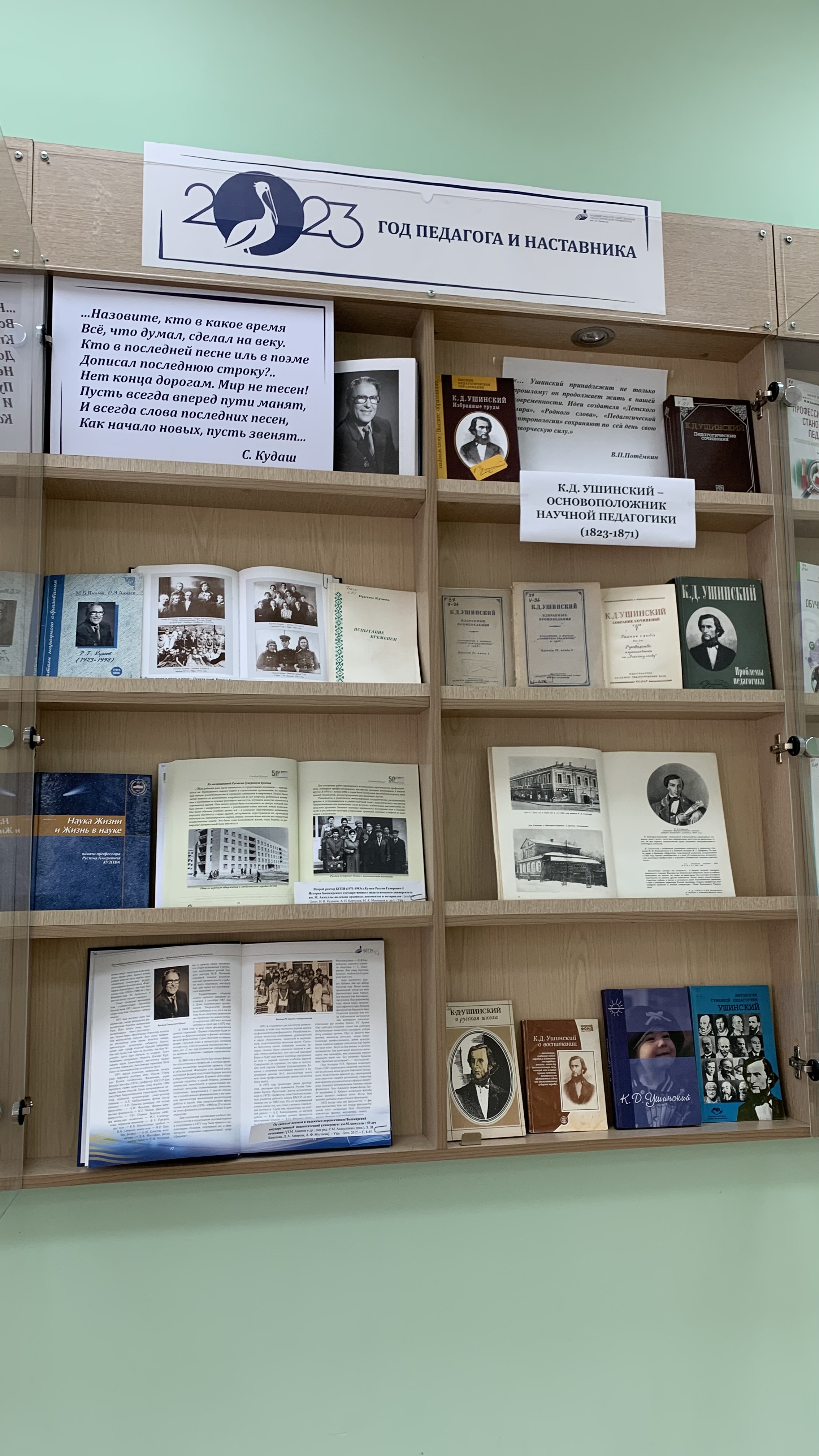 В 3 учебном корпусе оформлены книжные выставки, посвященные двум выдающимся деятелям: знаменитому русскому писателю и драматургу, автору произведений на революционную тематику, основоположнику социалистического реализма, номинанту на Нобелевскую премию в области литературы М. Горькому «Максим Горький: Великий мастер слова» (к 155-летию со дня рождения) (каб.110) и российскому педагогу, писателю, одному из основоположников научной педагогики в России К.Д. Ушинскому «К.Д. Ушинский – основоположник научной педагогики» (к 200-летию со дня рождения), приуроченная к Году педагога и наставника (каб.214).