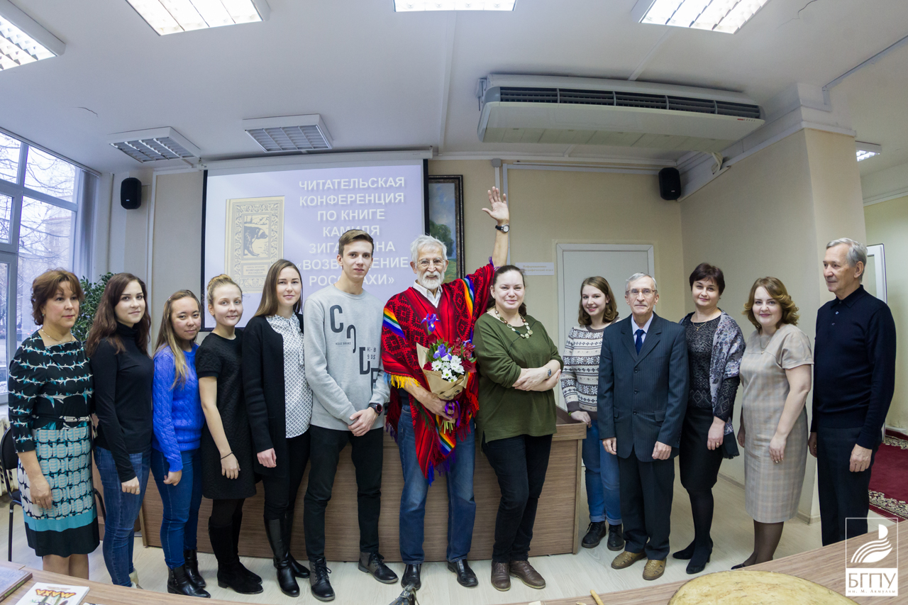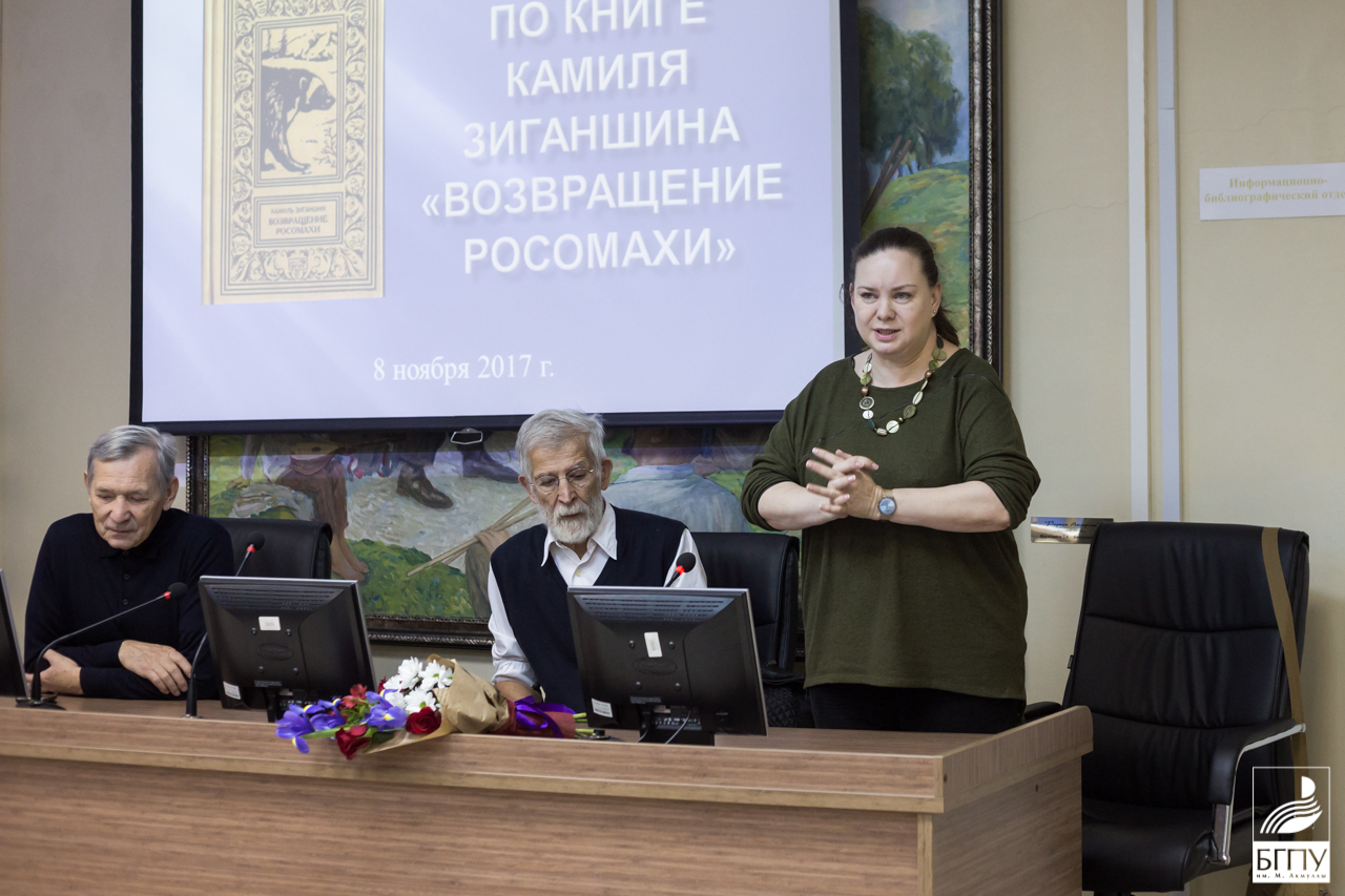 Мероприятие открыл заведующий информационно-библиографическим отделом библиотеки БГПУ Петр Федоров, который представил собравшимся Камиля Зиганшина как уникальную творческую личность, сочетающую в себе отважного путешественника, успешного предпринимателя и талантливого писателя.
