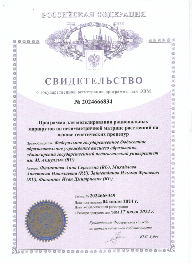 Разработчиками БГПУ им. М. Акмуллы получено свидетельство о государственной регистрации программ для ЭВМ