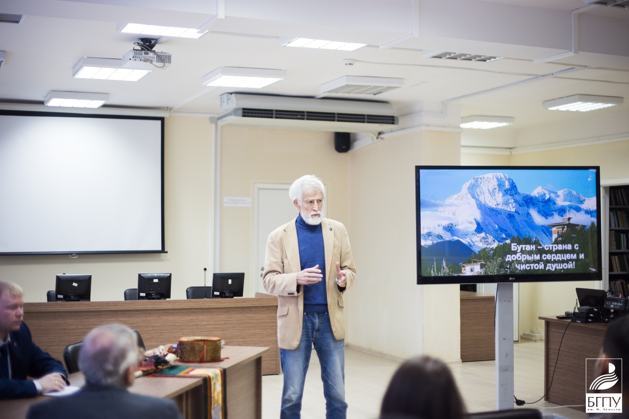 Камиль Фарухшинович в ходе слайд-лекции рассказал о своей недавней поездке в королевство Бутан. Он был первым жителем нашей республики, побывавшим в этой труднодоступной  части Южного Тибета. Основной идеей его рассказа была мысль о том, что можно при наличии честного, мудрого правления и доброй воли сделать своих граждан в меру обеспеченными и счастливыми, сохраняя при этом природные ресурсы и не разрушая экологию.