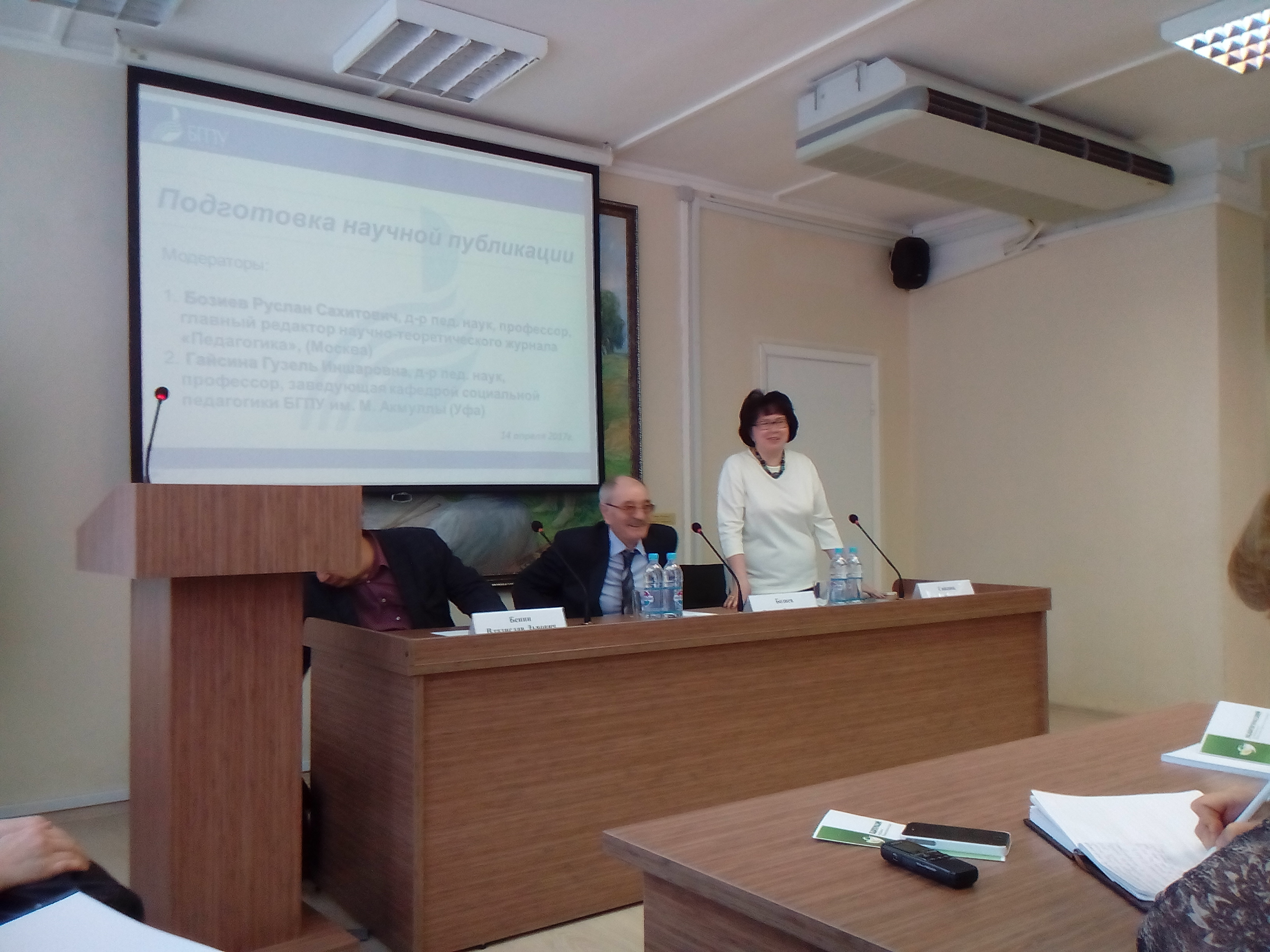 14 апреля 2017 г. в читальном зале учебного корпуса №2 «БГПУ им.М.Акмуллы» в рамках методологического семинара «Апрельские окна» ППС, магистранты, супервизоры Института педагогики приняли участие в заседании тематической секции «Подготовка научной публикации» (модераторы: Бозиев Р.С., доктор пед. наук, профессор, главный редактор научно-теоретического журнала «Педагогика» (г. Москва), Гайсина Г.И., доктор пед. наук, профессор, зав.кафедрой социальной педагогики БГПУ им. М. Акмуллы (г. Уфа)). Участники образовательных отношений имели возможность задать вопросы и получить ответы от ученых на все интересующие постерные точки по заявленной проблематике.