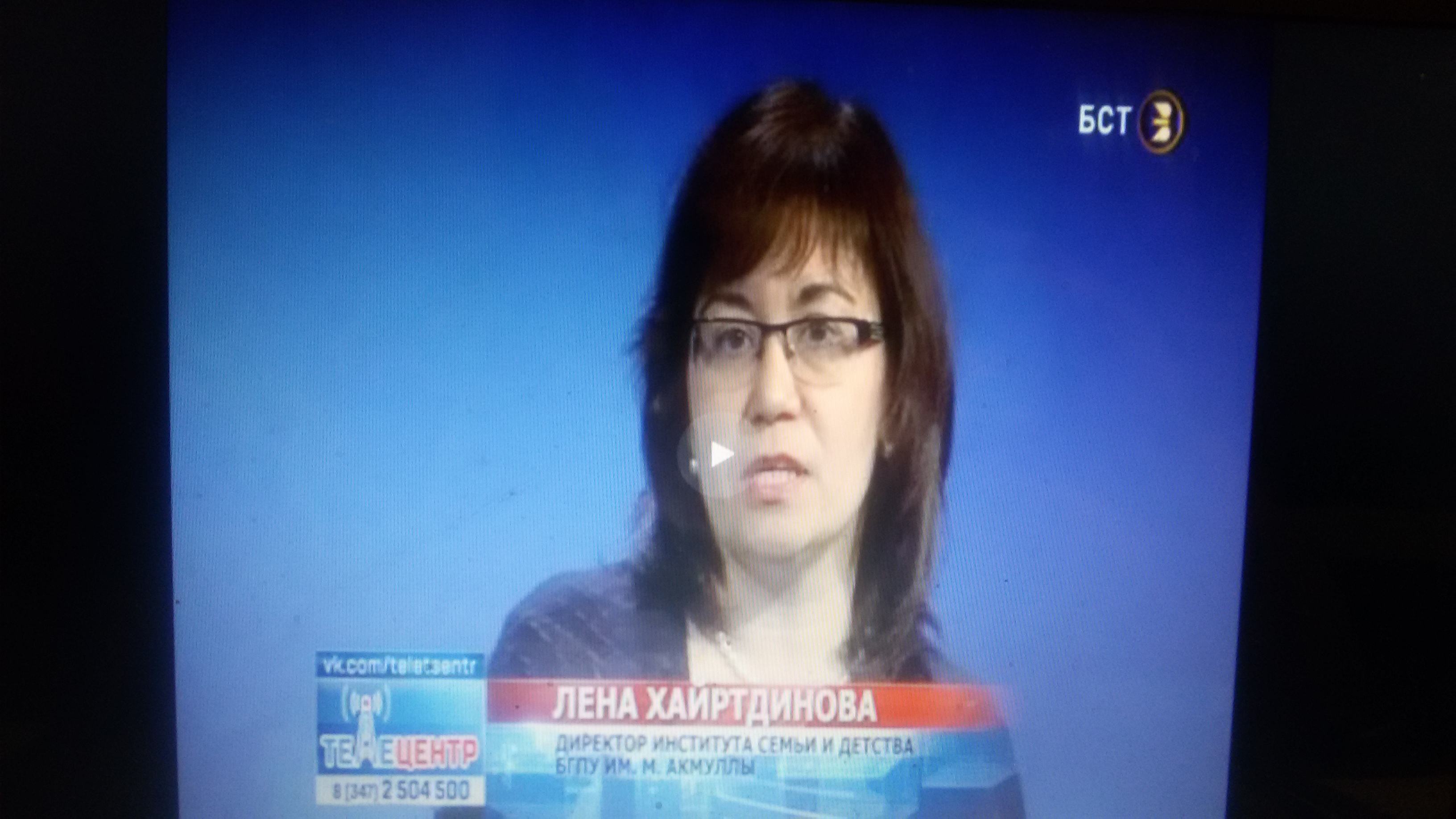 Директор Института семьи и детства БГПУ им. М. Акмуллы Л.Хайртдинова приняла участие в программе "Телецентр" на канале БСТ. Актуальность темы "Курс на семью" обусловлена разработанной ИСИ РБ стратегии "Семья 2030" и широко обсуждаемыми в обществе вопросами - низкой рождаемостью, увеличением количества разводов, неполных семей, а также с реализацией господдержки молодых семей, в которых в 2017 г. родился первый ребенок. Эти и многие другие вопросы обсуждались в студии приглашенными экспертами - А.Фаттаховой, начальником отдела правового и организационного обеспечения отделов ЗАГС Госкомитета РБ по делам юстиции; Н. Никитиным, депутатом госсосбрания РБ; З.Гуровой, главврачом роддома № 3 г.Уфы; Н. Шамсутдиновой и Н. Лавренюк, старшими научными сотрудниками Института стратегических исследований РБ; Э.Гатауллиной, начальником отдела Министерства труда и социальной защиты населения РБ. Эфир можно посмотреть на http://tv-rb.ru/teleproekty/in...