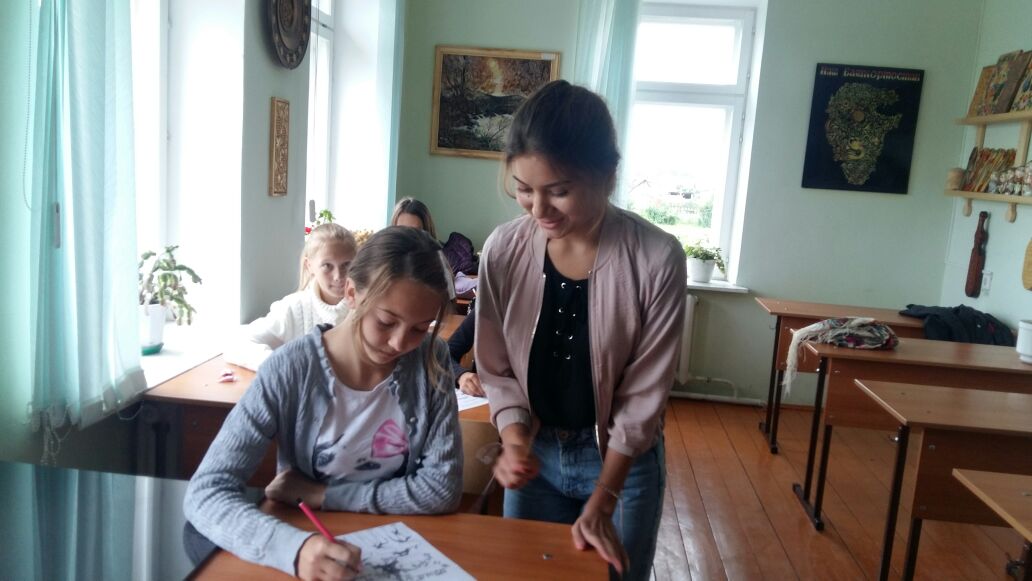 Волонтеров встретила директор дома-музея семьи Аксаковых Галина Гайнуллина и пригласила в в Дом ремесел, который тоже находится на территории музейного комплекса. Здесь  волонтеров ждала ребятня - надеждинские девочки и мальчики разных возрастов!