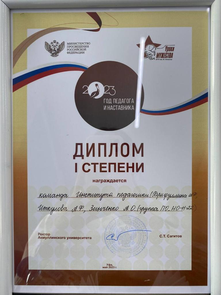Институт педагогики: Юлдашева Людмила Руслановна, Егорова Елизавета Александровна, Агадуллина Евгения Фларитовна, Надолько Елена Максимовна (группа ПОНО-11-22); Гарифуллина Адина Фаргатовна, Иткулова Азалия Фидановна, Зинченко Арина Олеговна (группа ПОНО-11-22). Науч.рук-ль и преподаватель Тимиргазиева А.И.