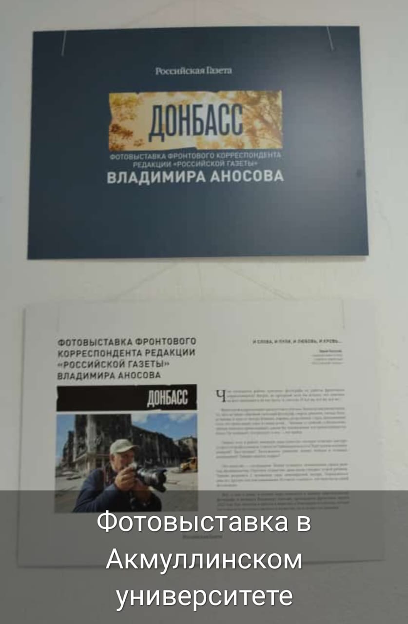 Уфимский филиал «Российской газеты», является  официальным изданием Правительства Российской Федерации,который  открыл в Белом зале Акмуллинского университета 2 корпуса выставку военного фотокорреспондента «Российской газеты» Владимира Аносова «Донбасс – 2022» .