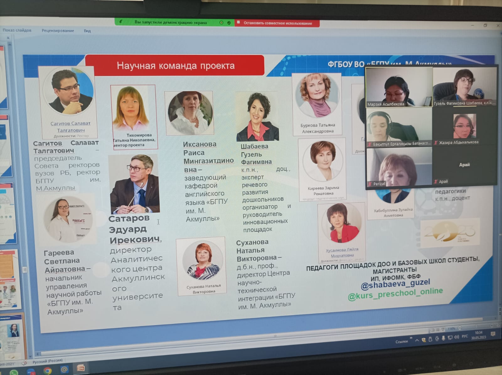 Шабаева Г.Ф., к п.н., доц., и.о. зав.каф. ДПиП выступила с докладом на тему " Инновационная подготовка будущих специалистов на базе технопарка, мастерской проф мастерства , центра развития компетенций ВУЗа к речевому развитию дошкольников в полилингвальной и поликультурной среде", где  Шабаевой Г Ф. и Борониловой И.Г., к.п.н., доц. , директором ИП  представлен опыт работы по реализации современных технологий раннего развития детей в полилингвальном и поликультурном пространстве детства на базе технопарка универсальных педагогических компетенций и ЦРК, проф. мастерской Шабаевой Г.Ф. представлена выставка опубликованных  научно-методических пособий кафедры дошкольной педагогики и психологии Института педагогики БГПУ имени Мифтахетдина Акмуллы