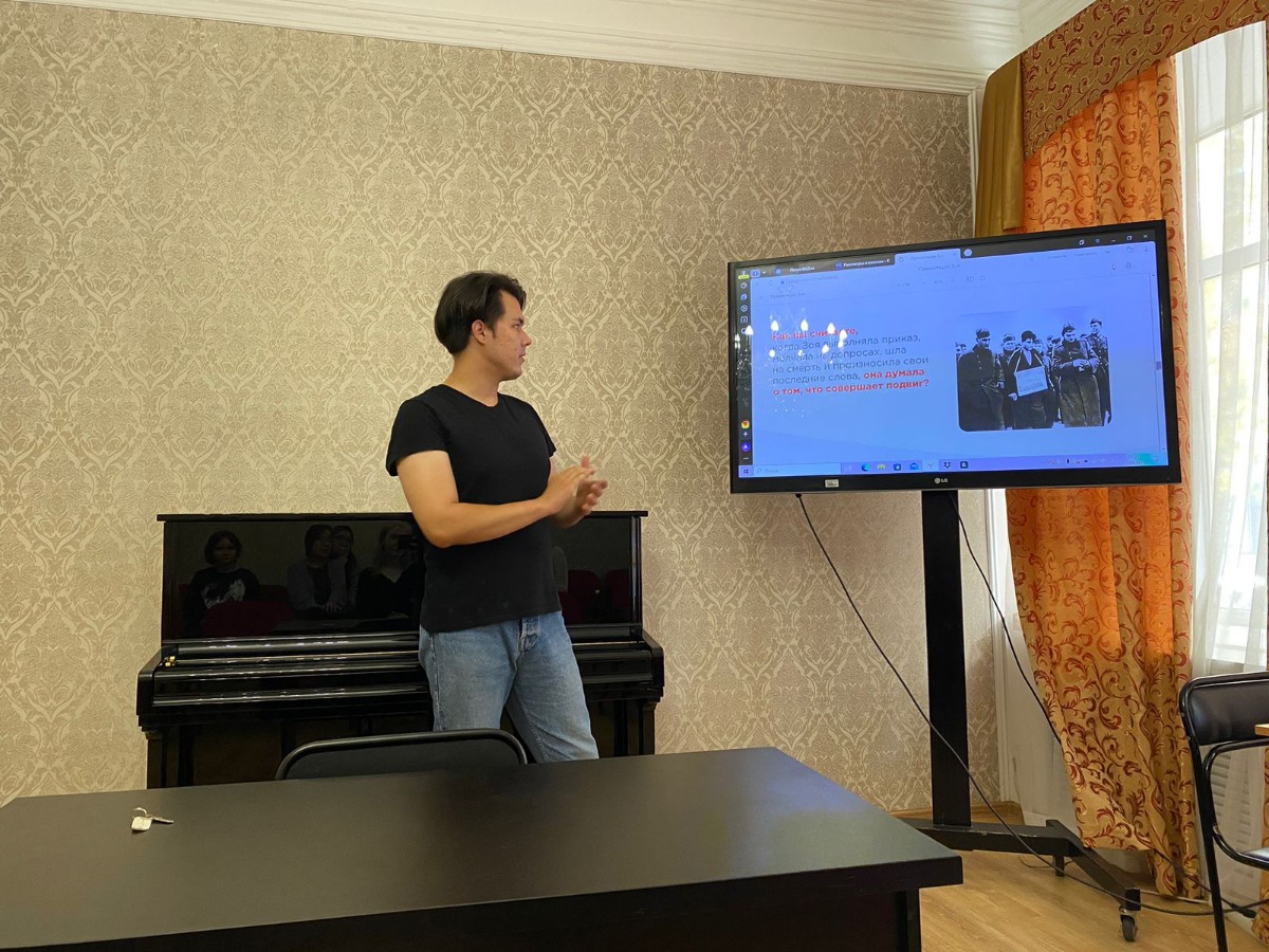 18 сентября 2023 г. в рамках тематического плана занятий "Разговоры о важном" прошла беседа со студентами 1 курса направления подготовки "Педагогическое образование", профиля "Музыкальное образование" на тему "100 лет со дня рождения Зои Космодемьянской".