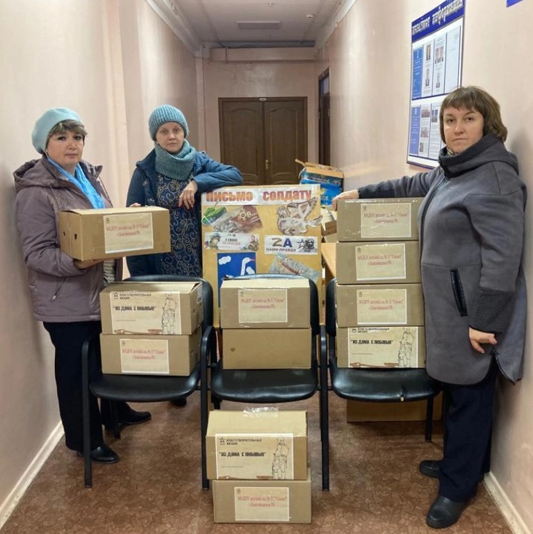 Воспитанники, родители (законные представители)  и педагоги МАДОУ детский сад №15 «Сказка»  г.Благовещенск принимают действенное участие в оказании помощи и поддержке нашим бойцам. Были собраны теплые вещи, продукты, изготовлены свечи для военнослужащих, которые участвуют в специальной военной операции. Дошколята изготовили поздравительные открытки ко Дню единства и согласия, написали трогательные, наполненные тёплом письма поддержки и благодарности за мужество и героизм.