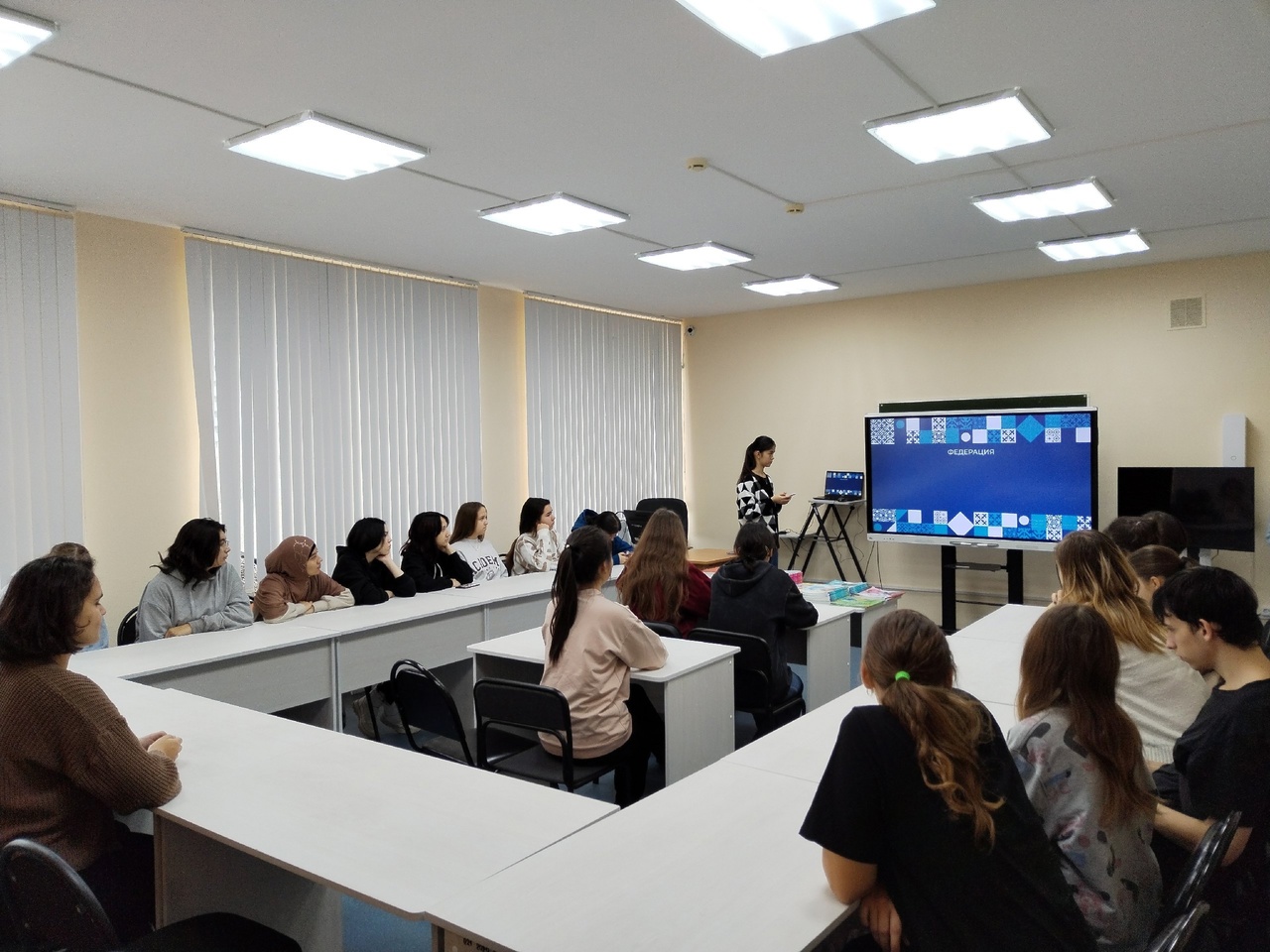 30 октября 2023 года в рамках просветительских мероприятий «Разговор о важном» для студентов 1 и 2 курсов по направлению Педагогическое образование профилю Начальное образование, проведена к.п.н., доцентом Савельевой Е.А. беседа на тему «День народного единства». Вызвало интерес выступление Рысбаевой Тахмины  и Чотбаевой Мырзайым об уважении к традициям своего народа и других народов, развитие деятельного ценностного отношения к историческому, культурному, религиозному наследию своего и других народов России.