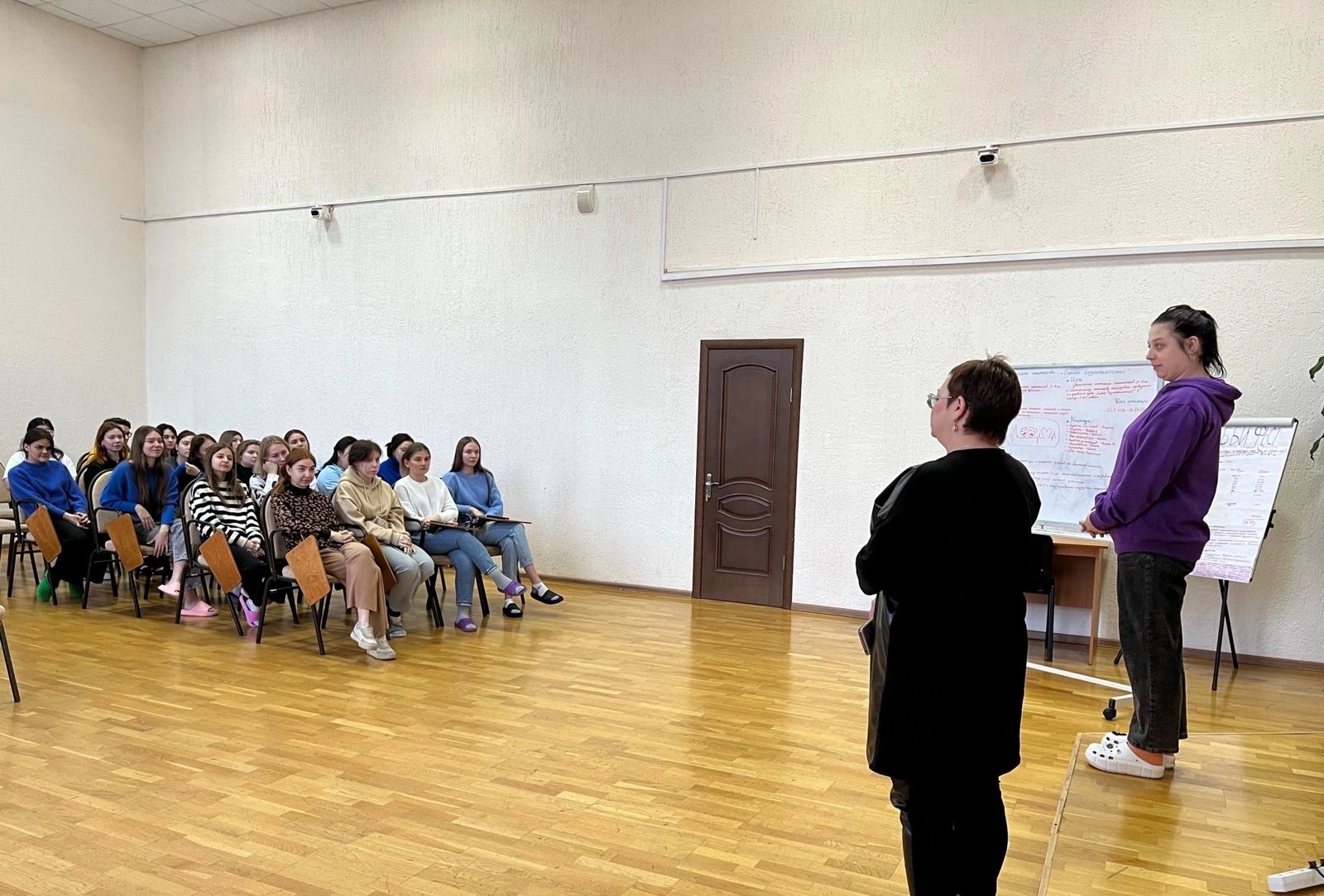 В последний день работы школы студенческого актива студенты защищали проекты, которые они разрабатывали в течении трёх дней. Зам. директора по воспитательной работе ИП Скрябина Лидия Сергеевна вместе с председателем студенческого совета ИП Алёной Сафроновой внимательно и объективно оценили представленные к защите проекты, дали советы для их улучшения и реализации.