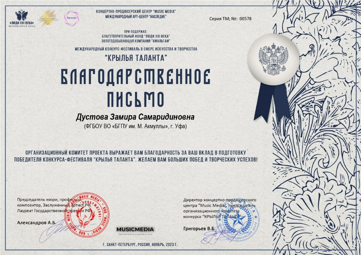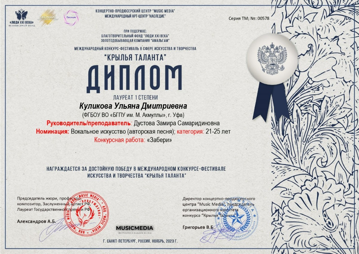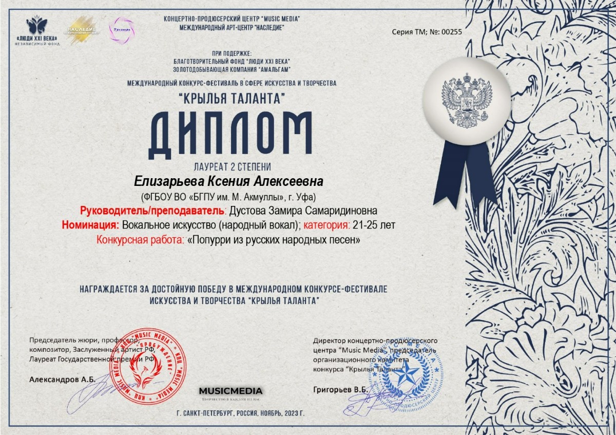 Студенты кафедры музыкального и хореографического образования института педагогики стали Лауреатами Международного конкурса-фестиваля в сфере искусства и творчества «Крылья таланта».