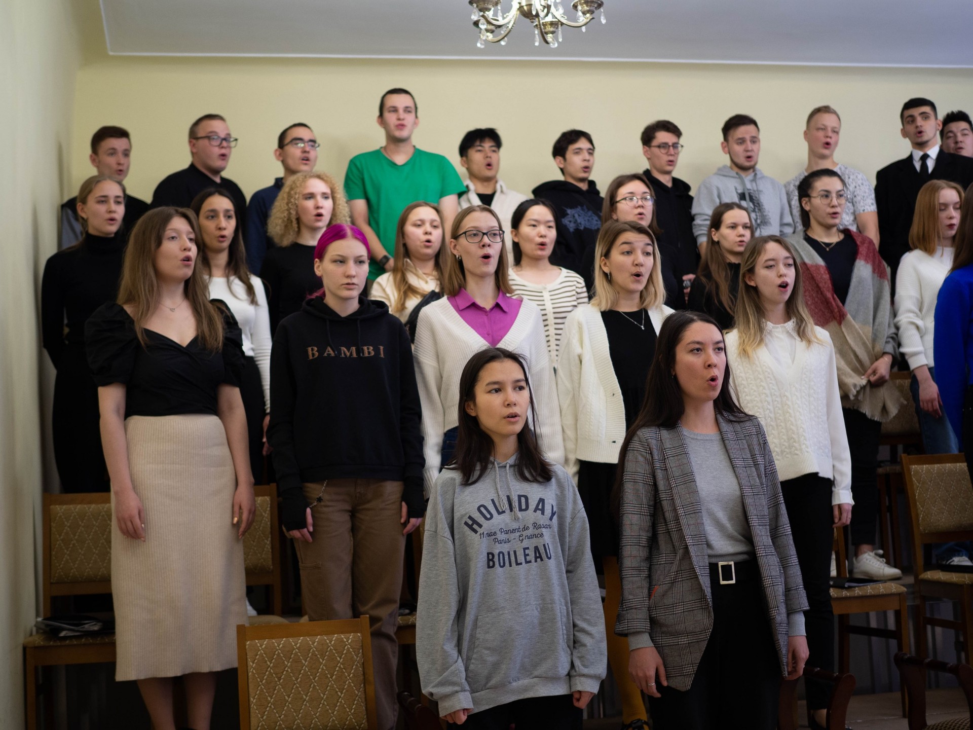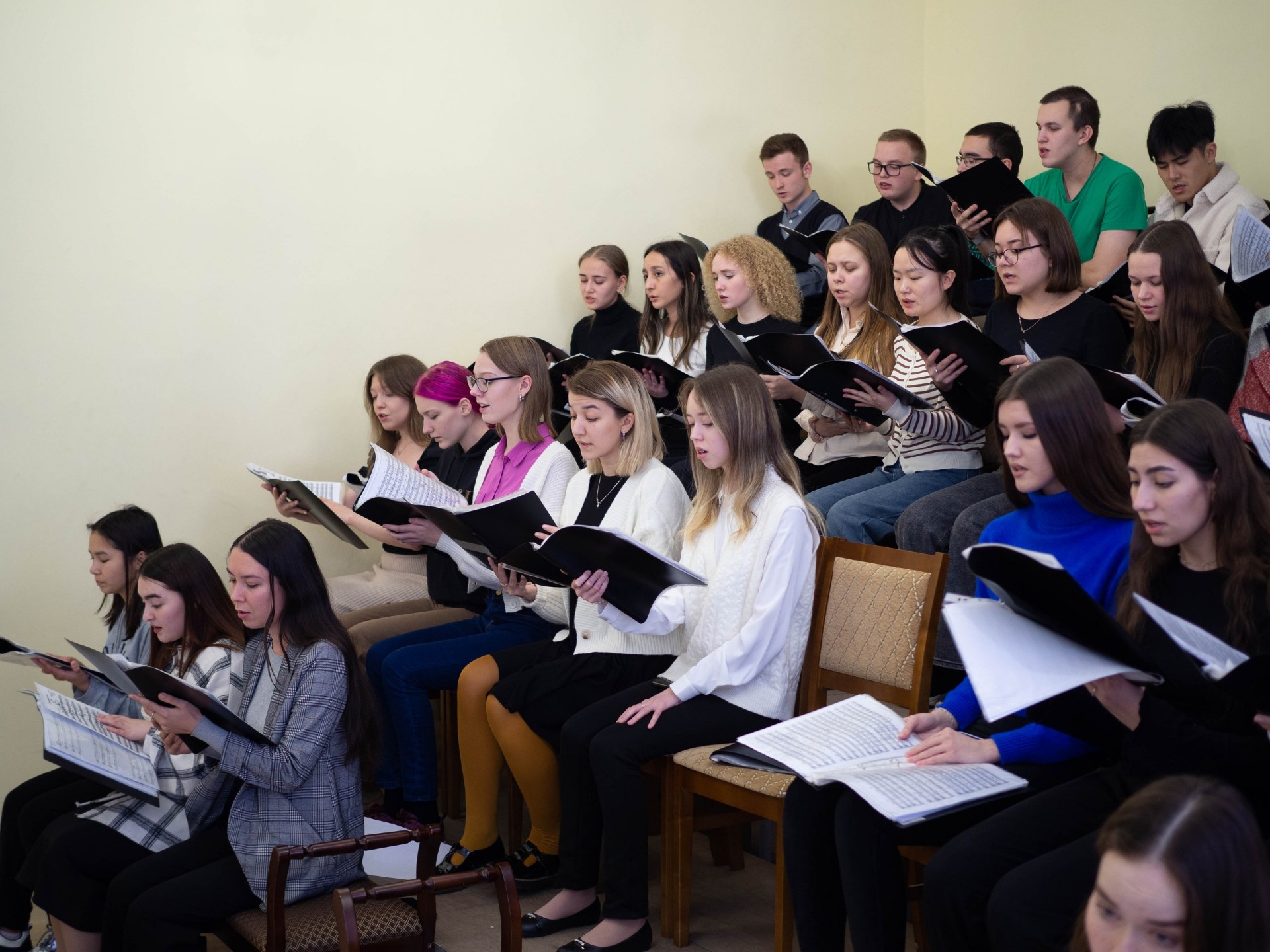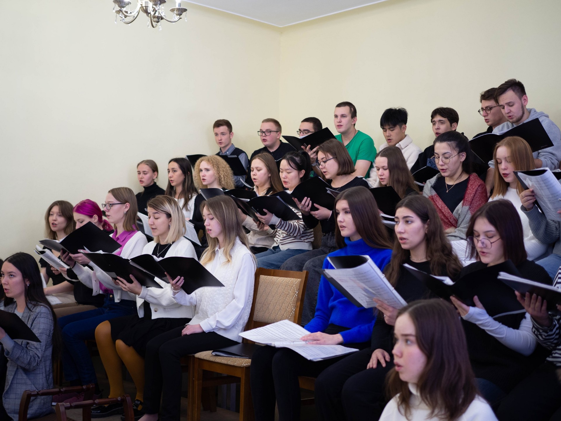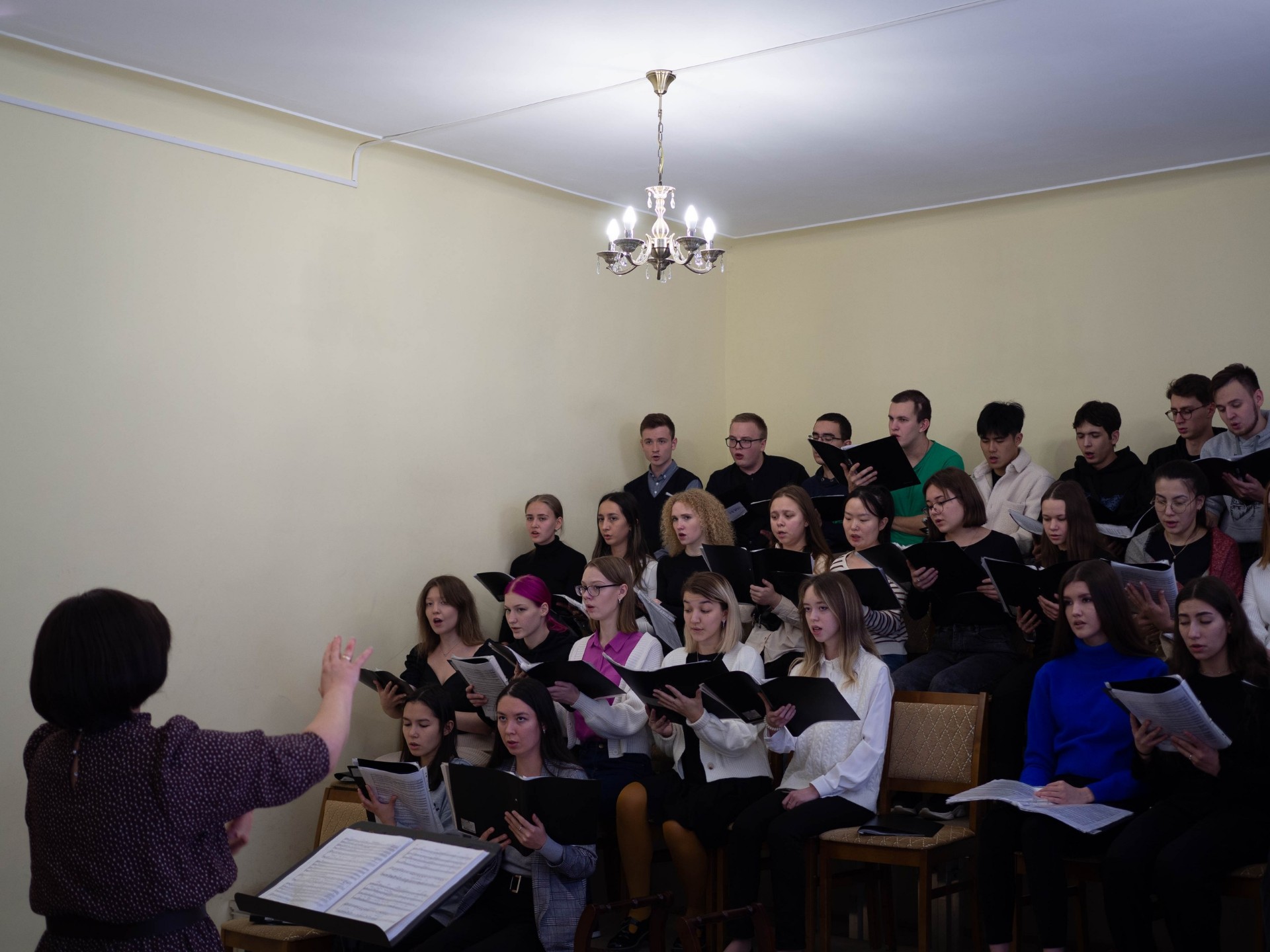 На занятии были продемонстрированы особенности работы с хоровым коллективом, а также состоялось знакомство с разнообразным репертуаром хора "Кантанте".