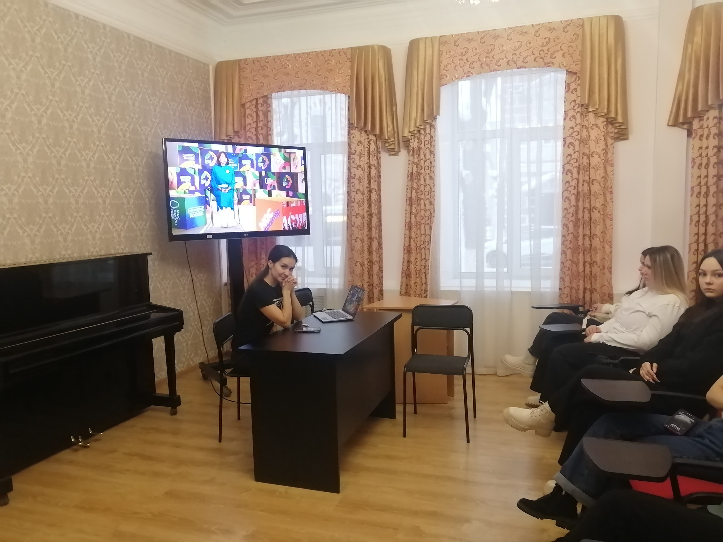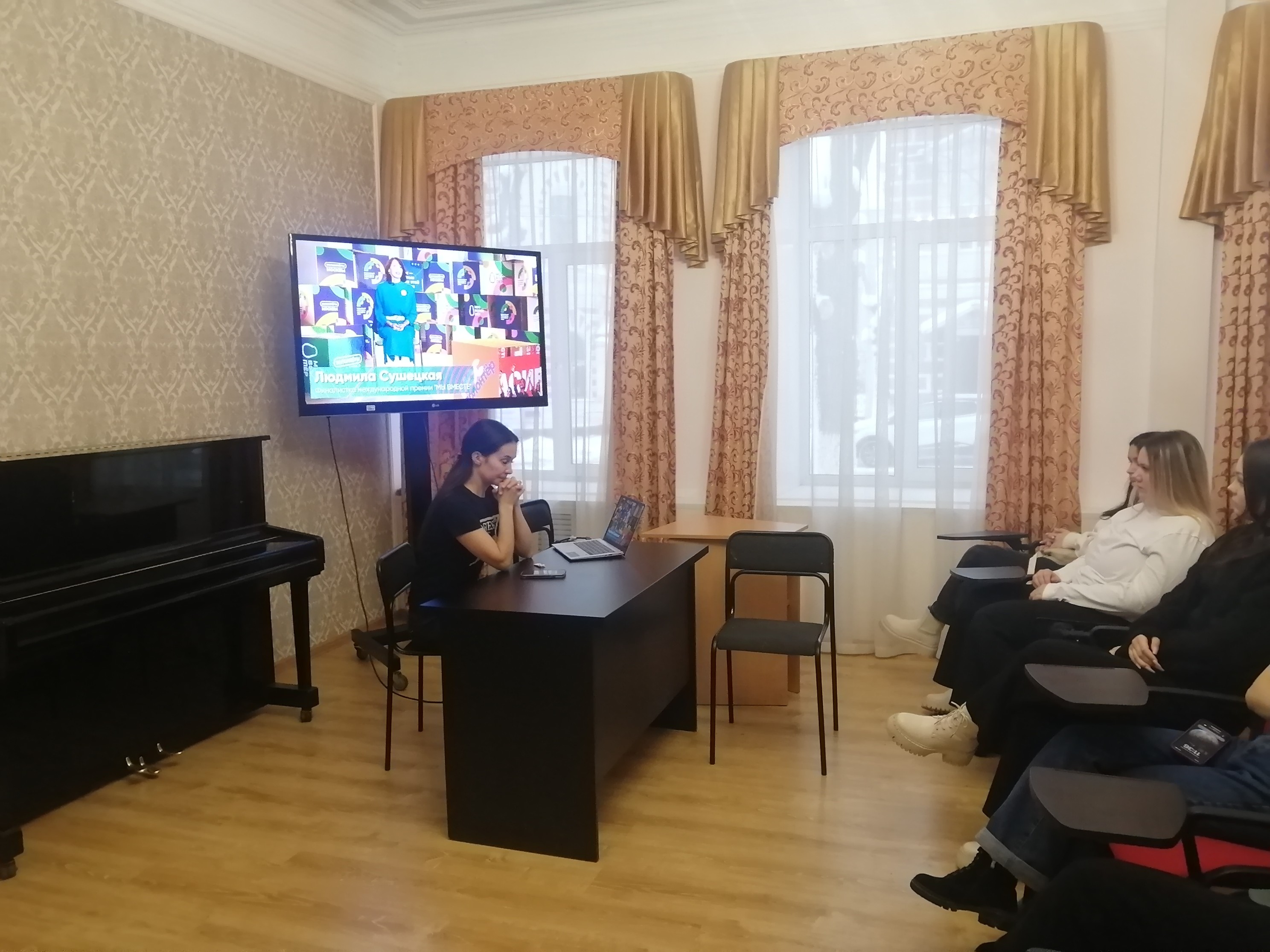 4 декабря 2023 на кафедре музыкального и хореографического образования состоялась беседа в рамках тематического плана занятий "Разговоры о важном" со студентами 1 курса профиля "Художественное образование (хореография)" на тему "Мы вместе" под руководством куратора, старшего преподавателя Муфтахутдиновой И. А.