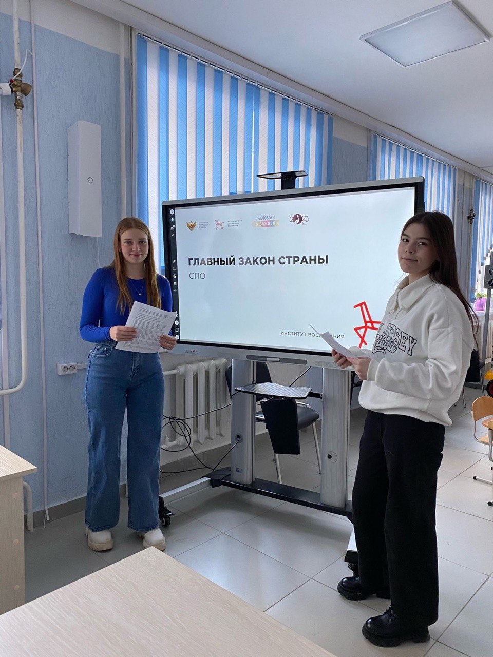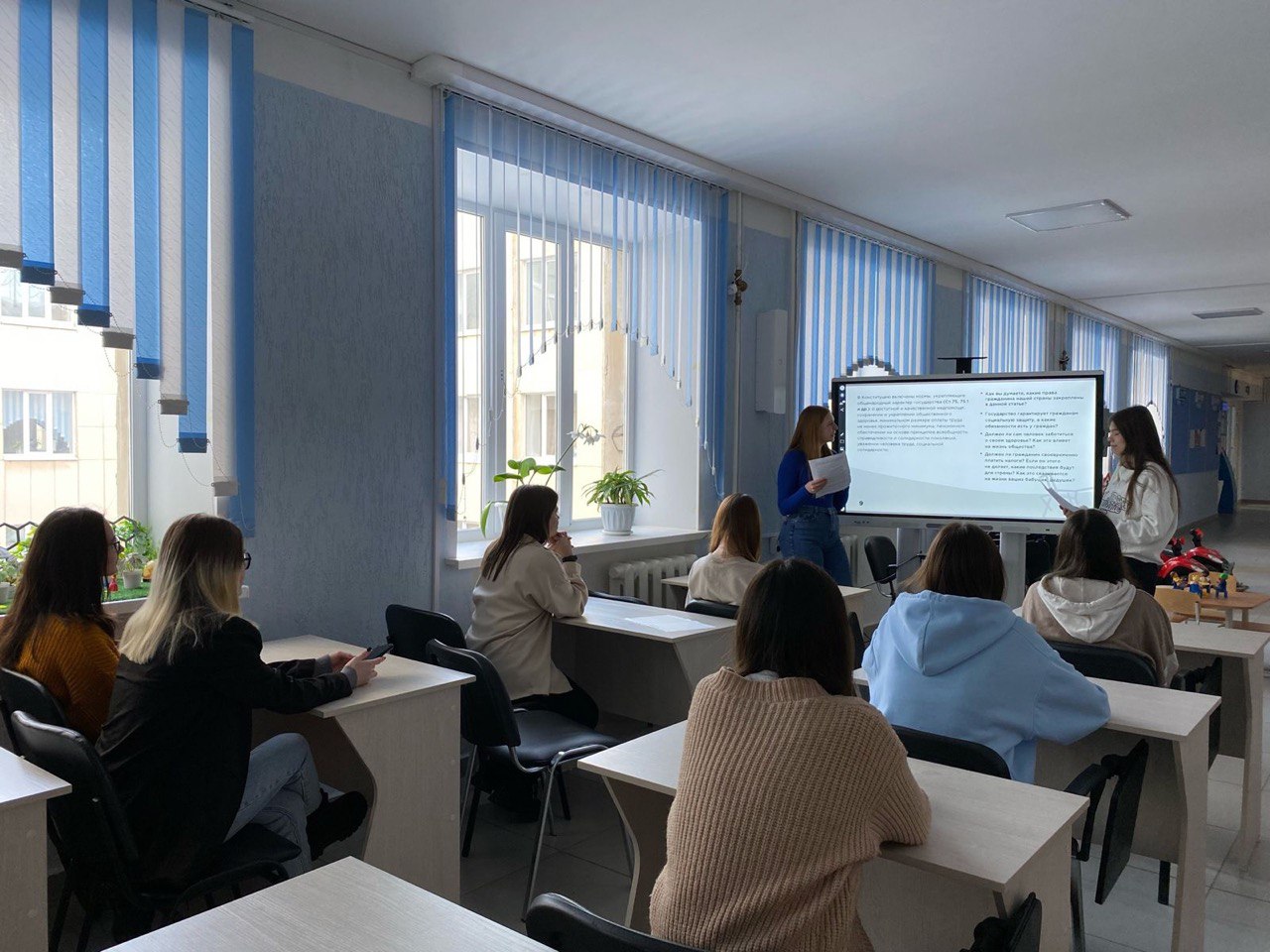 11.12.2023г. в рамках просветительских мероприятий Всероссийского проекта «Разговоры о важном!» для студентов, обучающихся по направлению «Педагогическое образование», профиль подготовки «Дошкольное образование» проведен тематический урок: «Главный закон страны». Данная беседа была направлена на расширение знаний и представлений о Конституции Российской Федерации как об основном законе страны, регулирующем общественные отношения. Студенты были заинтересованы и принимали активное участие в обсуждения темы. Старались ответить на вопросы: Что вы знаете о Конституции РФ?; Зачем она нужна в обществе?; Когда она появилась в нашей стране? Обсудили статьи, которые касаются каждой семьи и традиционных семейных ценностей, узнали много нового о семейных традициях народов Республики Башкортостан.