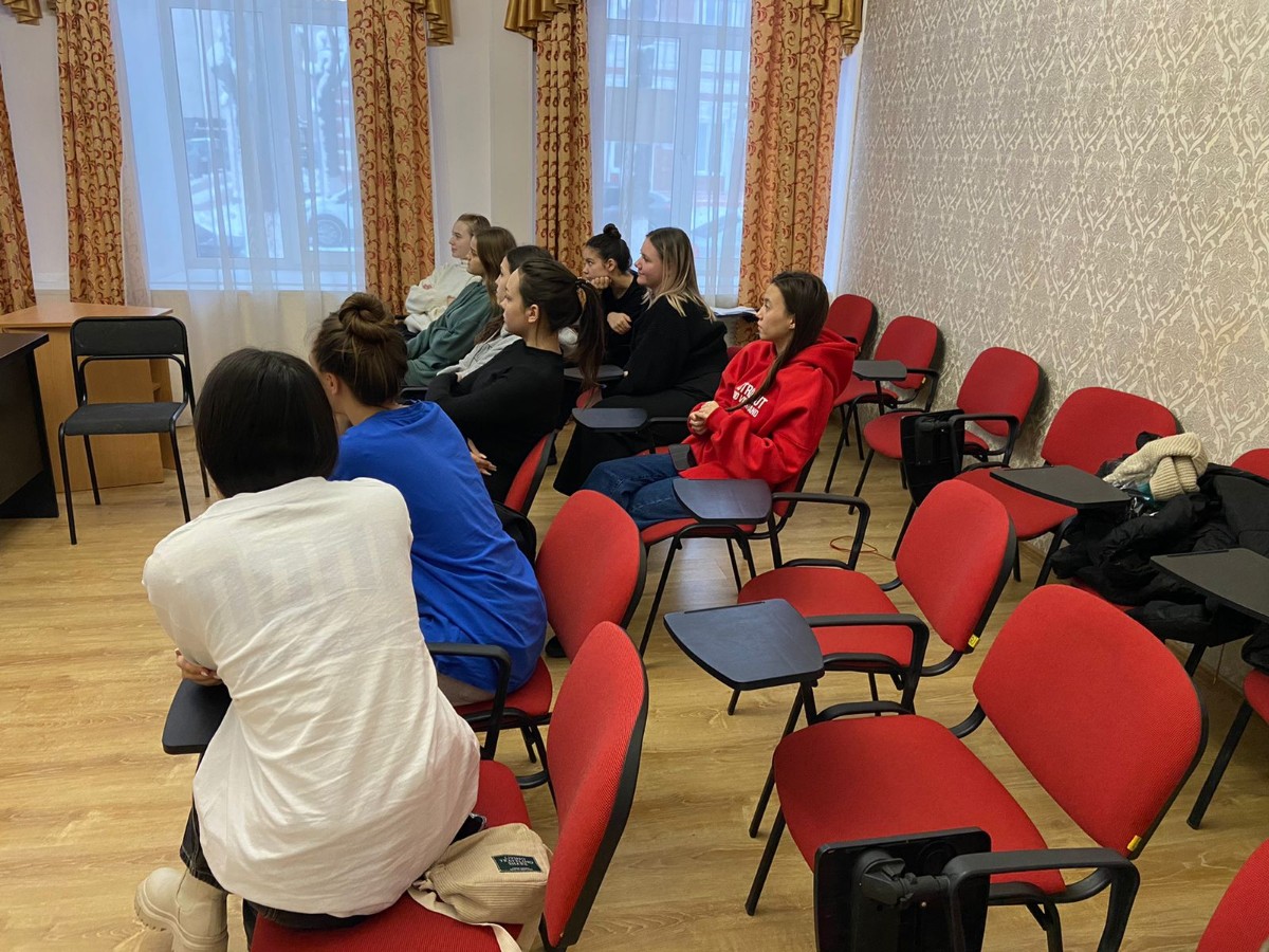 11 декабря 2023 года на кафедре музыкального и хореографического образования состоялась беседа со студентами 1 курса профиля "Художественное образование (хореография)" в рамках тематического плана занятий "Разговоры о важном" на тему "Главный закон страны" под руководством куратора старшего преподавателя кафедры Муфтахутдиновой Ирины Александровны.