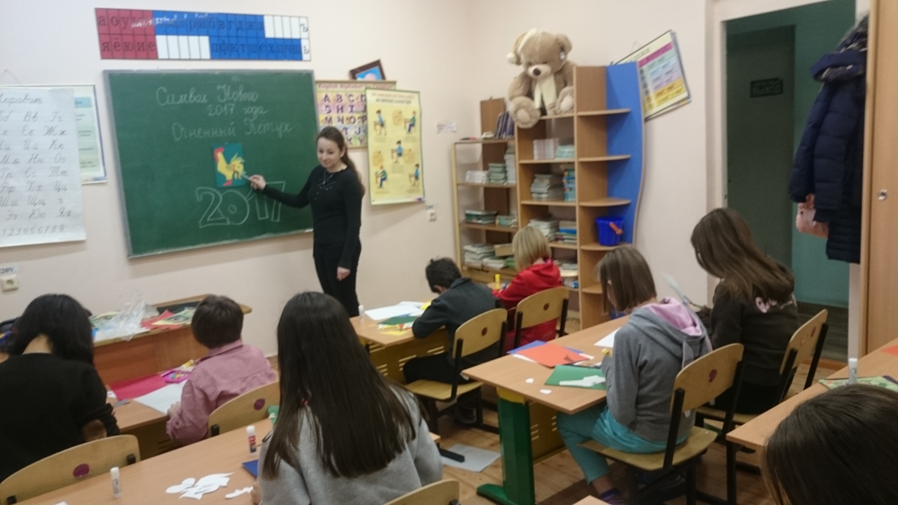 10 декабря 2016 года студенты 1 курса Института педагогики БГПУ им. М. Акмуллы, члены волонтёрского отряда «Палитра» Гузель Загирова и Айгуль Хуснутдинова (направление «Начальное образование»), под рук. к.п.н., доц. кафедры ТиМНО Е.А. Савельевой, провели занятие для воспитанников Городского социального приюта – изготовление аппликации «Символ Нового 2017 года – Огненный петух».  На занятии прошла беседа о том, что принесёт нам символ года 2017 — Петух? Петух по своей натуре характеризует начало, уверенность, пылкость характера, непоколебимость и эмоциональность. Он прирождённый лидер, требующий к себе всеобщее внимание и уважение. Петух настойчиво добивается осуществления поставленных перед собой целей и задач.  Грядущий Символ года 2017 — Огненный петух  представляет собой огонь, источник света, активность и одновременно гармонию.