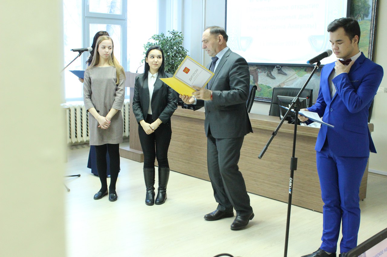 В БГПУ им. М. Акмуллы начались Международные дни Мифтахетдина Акмуллы. Старт был дан научно-популярной онлайн-лекцией из 202 аудитории 2 корпуса БГПУ им. М. Акмуллы, которую вёл председатель Союза писателей РБ З. А. Алибаев.  Студенты Института педагогики смогли прослушать эту лекцию в 5 учебном корпусе. Вместе со студентами факультета башкирской филологии, наши обучающиеся приняли участие в викторине и получили интересную и полезную информацию. В 12:30 состоялось торжественное открытие международных дней Мифтахетдина Акмуллы «Творческое наследие М. Акмуллы и современность». С приветственным словом выступил ректор БГПУ им. М. Акмуллы Раиль Мирваевич Асадуллин. В ходе мероприятия стипендией и премией имени М.Акмуллы были награждены студенты нашего университета. Проректор по научной работе, Людмила Александровна Амирова, наградила победителей конкурса «Стилизованный просветитель» Жаркевич Викторию, Гадомину Розалину, Зарипову Арину и Даминову Ямилю.  Для студентов была подготовлена насыщенная программа открытия: солист БГТОиБ, заслуженный артист России и Башкортостана Руслан Хабибуллин исполнил арию из оперы Загира Исмагилова «Акмулла», студент ФБФ Ислам Тухватуллин прочитал стихотворение Мифтахетдина Акмуллы «Башкиры, всем нам нужно просвещенье» на башкирском языке, преподаватели разных факультетов рассказали о проектах, направленных на сохранение и увеличение значимости великого поэта-просветителя. Кульминацией мероприятия стал просмотр фрагмента из фильма «Мифтахетдин Акмулла», который был снят в 2009 году студентами художественно-графического факультета.  После открытия «Мифтахетдиновских дней», преподаватели и студенты возложили цветы к памятнику Мифтахетдина Акмуллы.