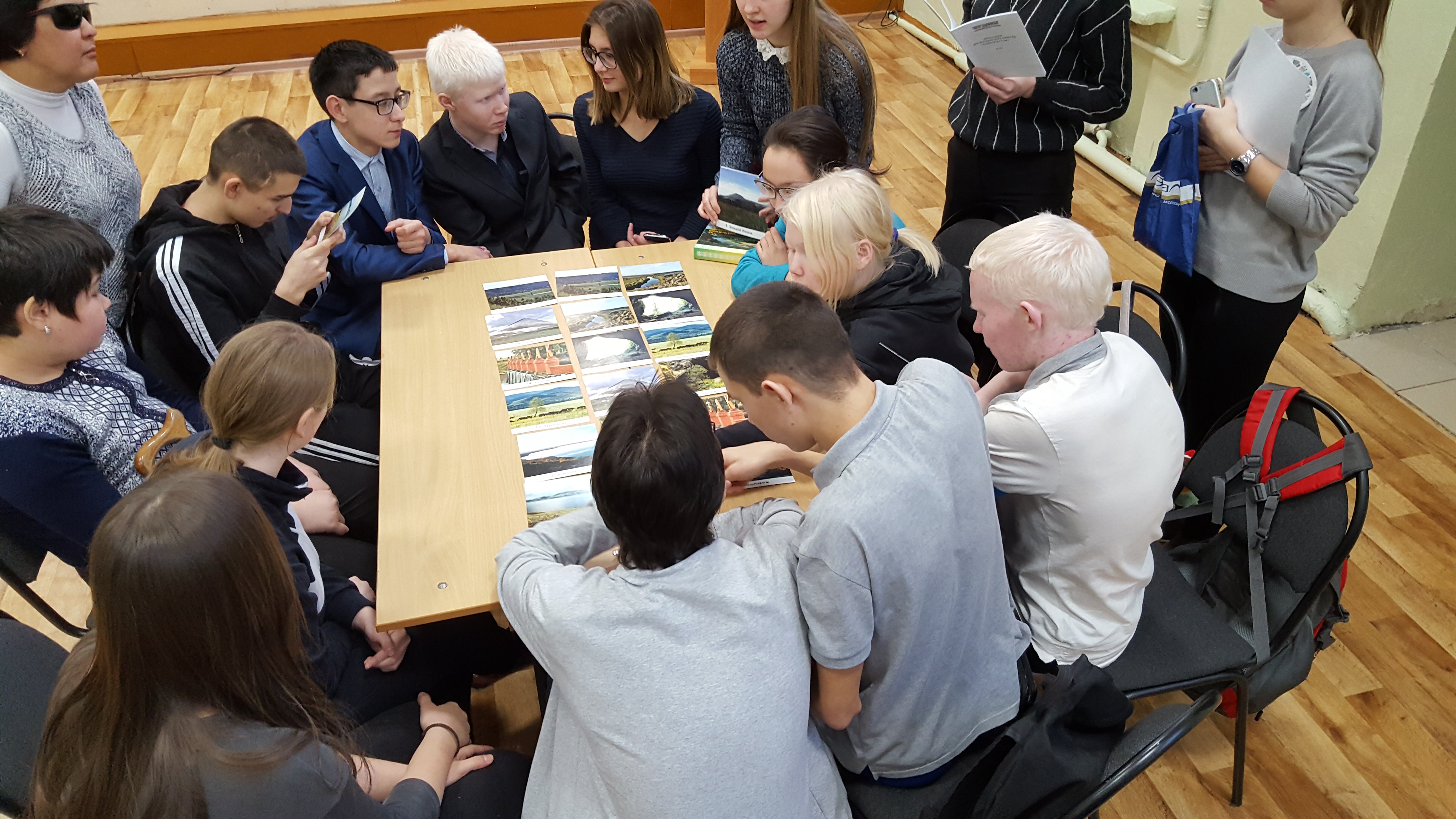 18 января 2018 года руководитель проекта «Настольные игры о Родине», специалист по работе с молодежью регионального общественного молодёжного добровольческого движения «Вместе» Республики Башкортостан, к.п.н., доцент кафедры теорий и методик начального образования БГПУ им. М. Акмуллы Е. А. Савельева совместно с волонтерами регионального общественного м0олодёжного добровольческого движения «Вместе» Республики Башкортостан провели игру-лото «Природные достопримечательности Башкортостана» для обучающихся 3 и 8 классов Уфимской коррекционной общеобразовательной школе-интернат №28 для слепых и слабовидящих обучающихся.