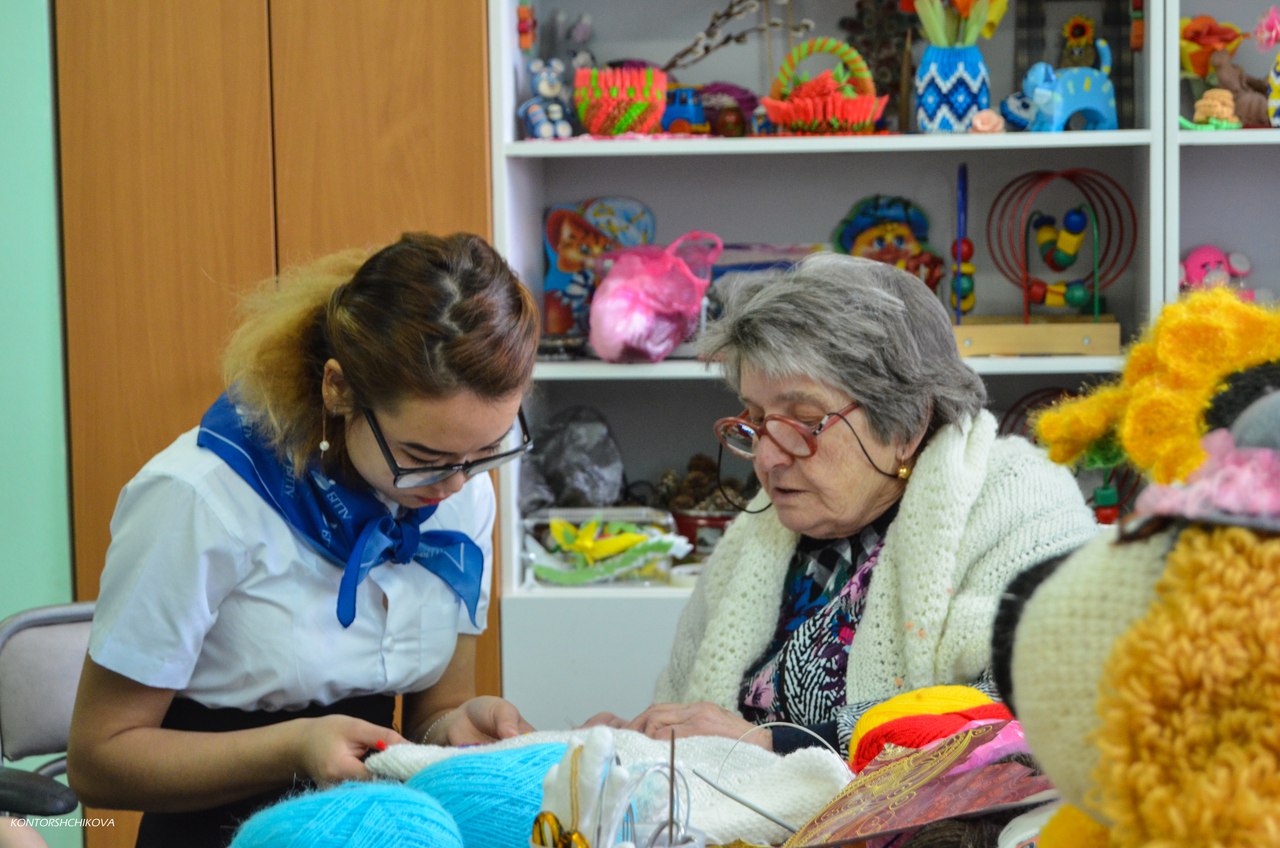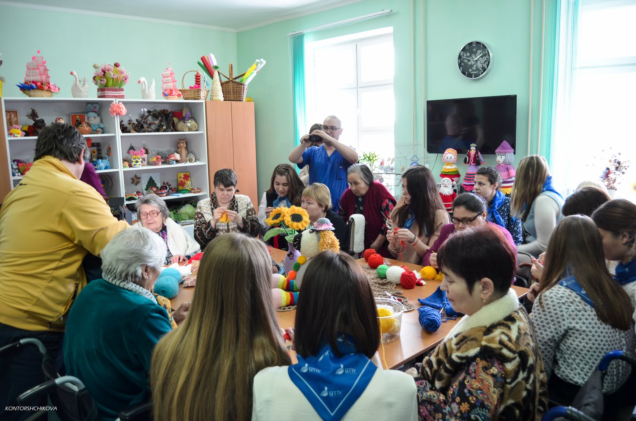 «Сегодня волонтерской отряд «Палитра» БГПУ им. Акмуллы вместе с жительницами Уфимского дома-интерната обучался искусству рукоделия. Мы очень прониклись этой тёплой атмосферой: кто-то учился вязать с нуля и делал свои первые шаги в этом непростом деле, кто-то совершенствовал свои навыки и обменивался своим опытом с бабушками. Подобные акции очень ценны для пожилых, потому что они дают им почувствовать себя нужными и полезными для общества и для студентов, потому что они познают новое для себя и дарят тепло и радость окружающим».