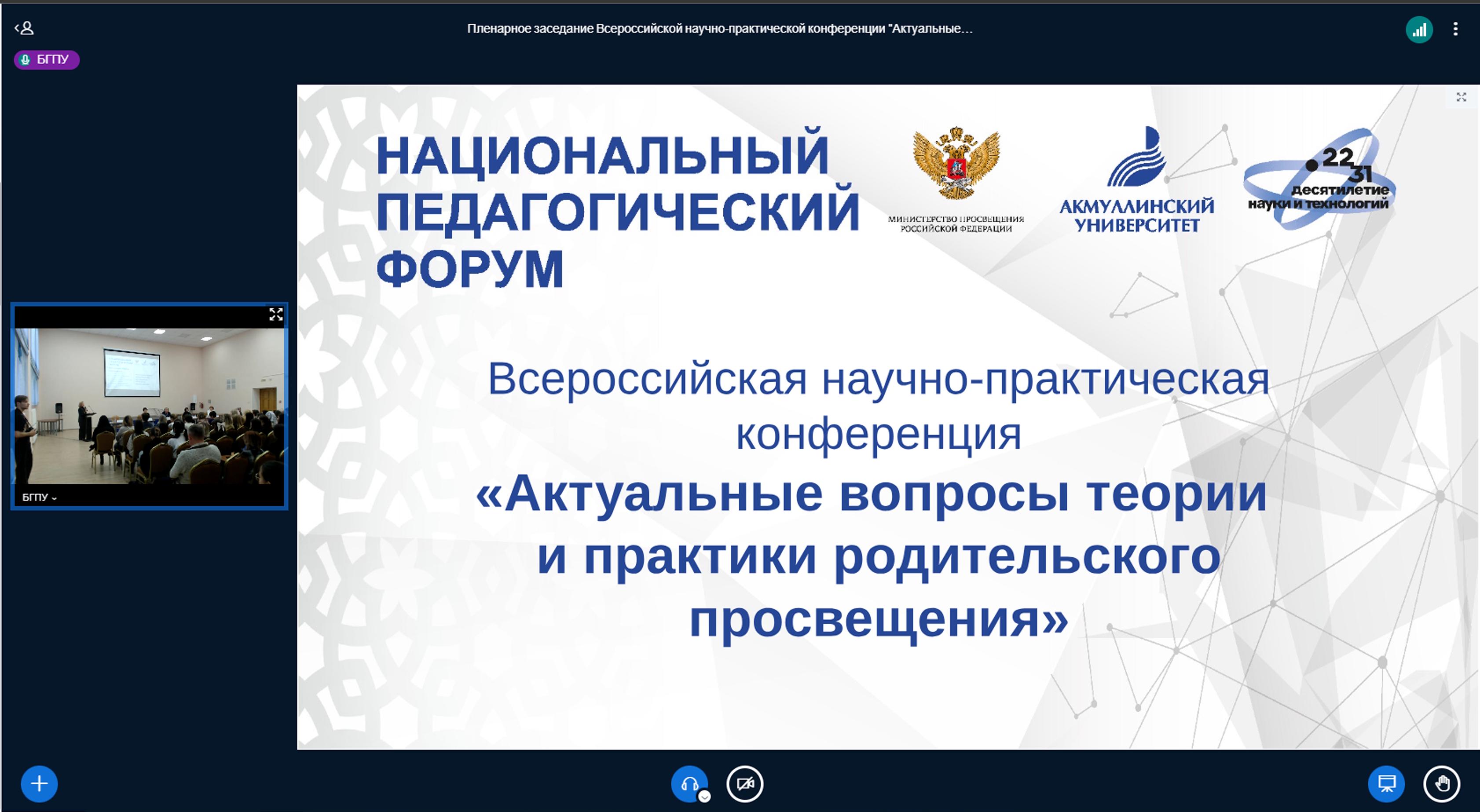 Всероссийская научно-практическая конференция «Актуальные вопросы теории и практики родительского просвещения»