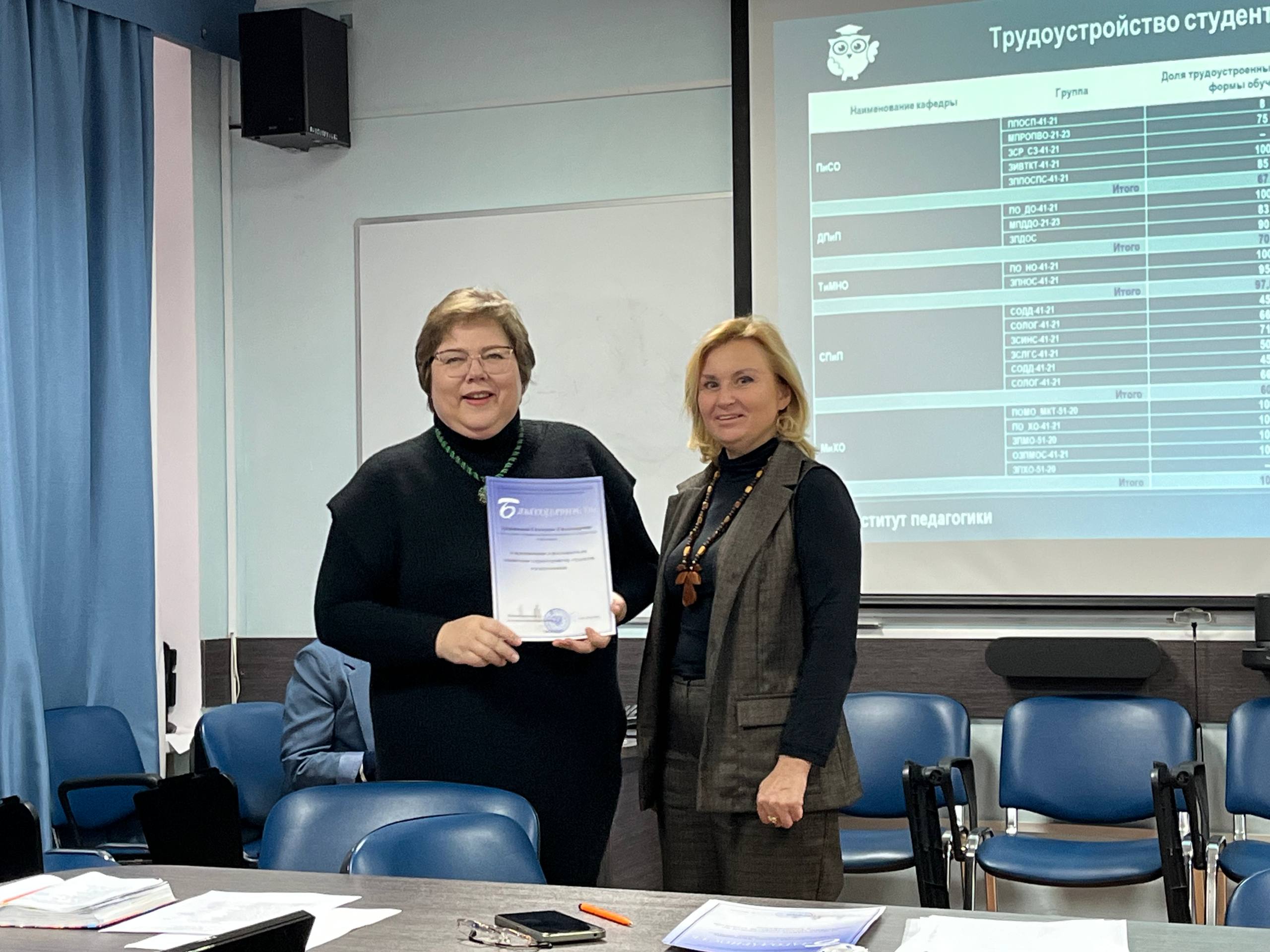 25 ноября 2025г. в Институте педагогики состоялся очередной Ученый совет. На Ученом совете обсуждались результаты трудоустройства выпускников в 2025 году. Зам. директора по учебной работе ОЗО, Корочкова Людмила Николаевна, выступила с результатами по трудоустройству. Отметила количество трудоустроенных выпускников по каждой выпускающей кафедре, продемонстрировала мониторинг трудоустройства, дала сравнительную характеристику по выпускникам очной и заочной формы обучения.