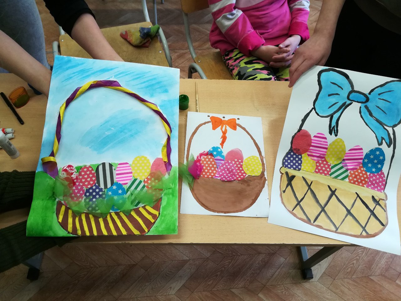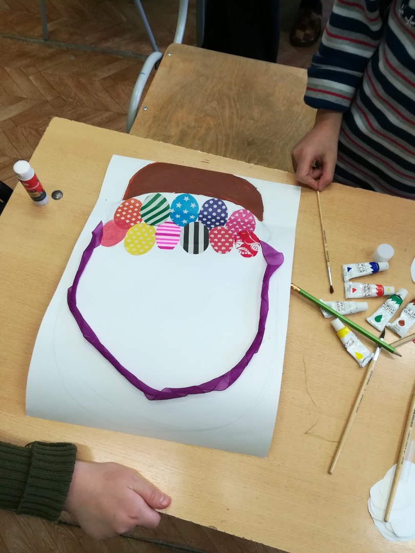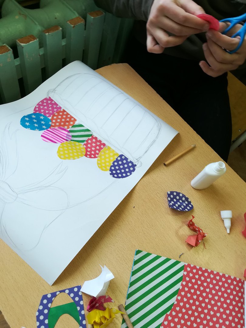 Регина Гареева: «Скоро праздник Пасхи, поэтому занятие с детьми я запланировала в виде аппликации с украшением корзины, внутри которой будут уложены разноцветные пасхальные яйца. Все воспитанники работали творчески, с увлечением, вкладывая душу в процесс создания поделки.