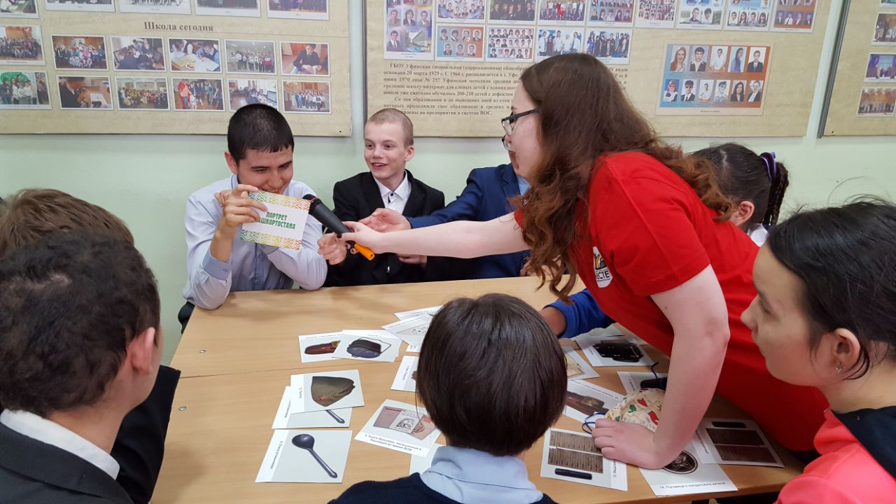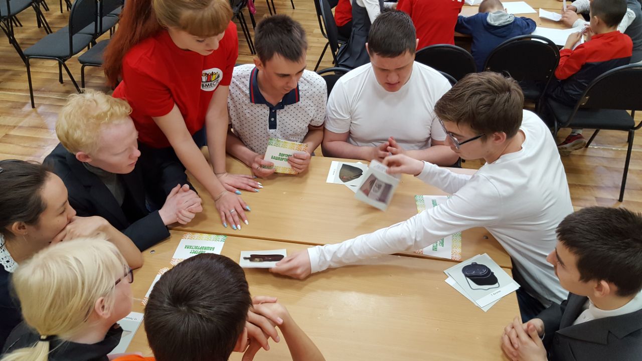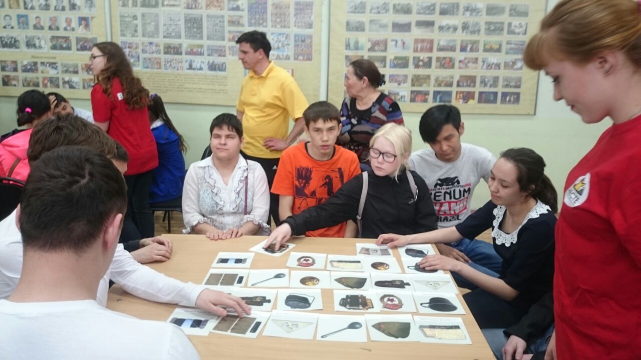 10 мая 2018 года  руководитель проекта «Настольные игры о Родине» регионального общественного молодёжного добровольческого движения «Вместе» Республики Башкортостан,  к.п.н., доцент кафедры теорий и методик начального образования  БГПУ им. М. Акмуллы Екатерина  Савельева совместно с волонтерами регионального общественного молодёжного добровольческого движения «Вместе» Республики Башкортостан, студентами Института педагогики БГПУ им. М. Акмуллы  направлений «Начальное образование», "Дошкольное образование"  Дарьей Бакулевой, Эвелиной Мухетдиновой, Ларисой Гришаевой, Гульгеной Бакиевой,  Миляушой Габидуллиной, Лианой Гилязевой, Екатериной Ларьковой провели  военно-историческое лото «Предметы личного пользования солдат и офицеров времен Великой Отечественной Войны 1941-1945 гг.» для обучающихся   3 и 9 классов Уфимской коррекционной общеобразовательной школа-интернат №28 для слепых и слабовидящих обучающихся. Игра предназначена  для детей, взрослых и лиц с нарушением зрения.