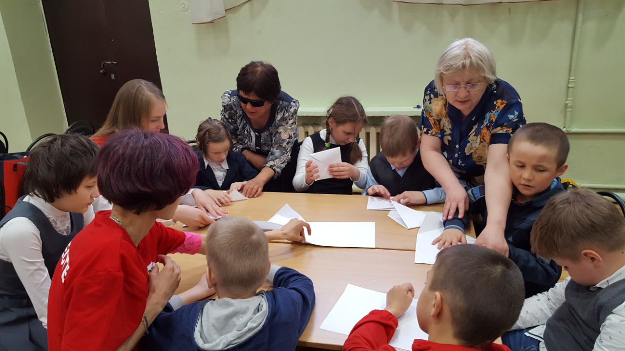 Незрячих участников игры волонтеры обучали складывать фронтовое письмо-треугольник. Затем ведущий игры им рассказывал о предметах личного пользования бойцов  и предлагал изучить их на ощупь.