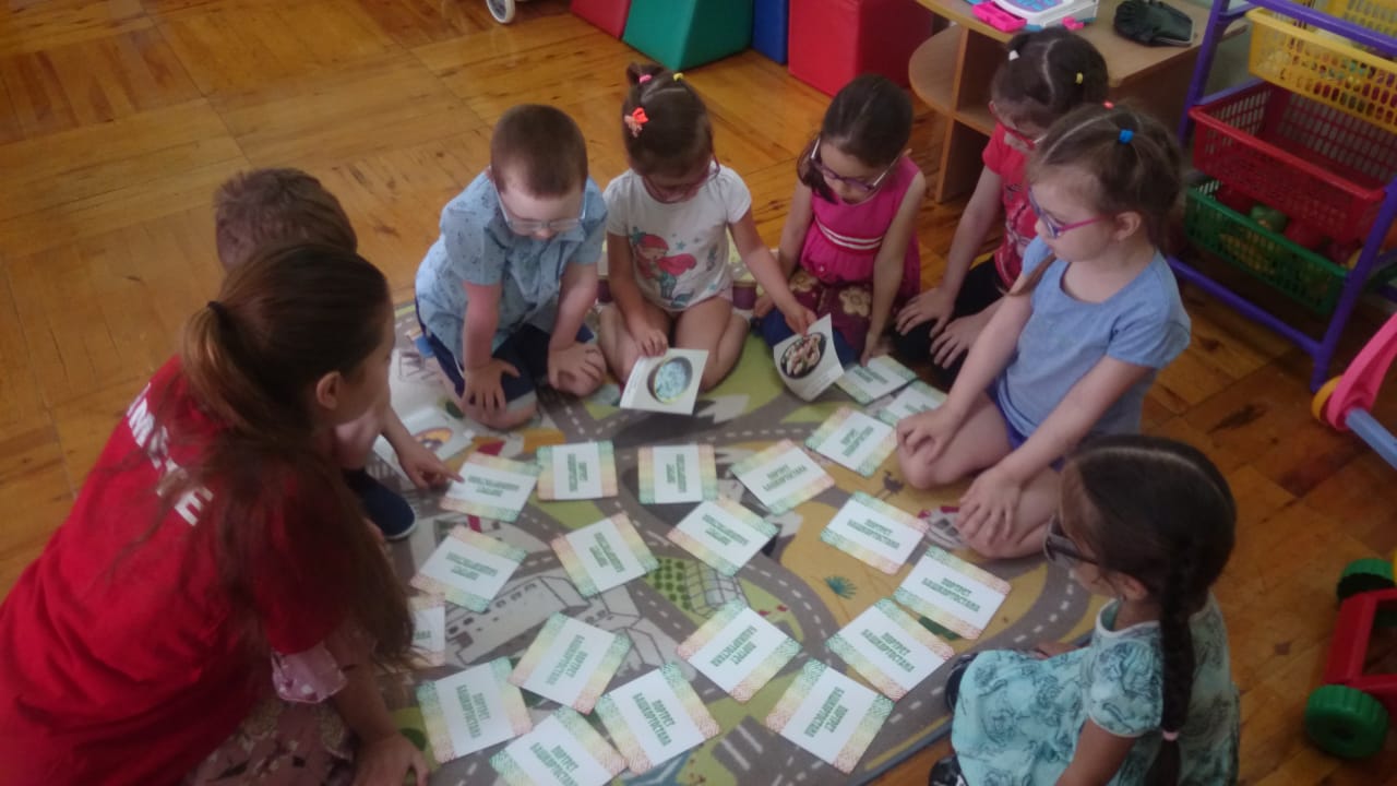 26-27 июня 2018 года  руководитель проекта «Настольные игры о Родине», специалист по работе с молодежью регионального общественного молодёжного добровольческого движения «Вместе» Республики Башкортостан,  к.п.н., доцент кафедры теорий и методик начального образования  БГПУ им. М. Акмуллы Е.А. Савельева совместно с волонтерами регионального общественного молодёжного добровольческого движения «Вместе» Республики Башкортостан, студентами Института педагогики БГПУ им.М. Акмуллы Дианой Акбутиной (2 курс направление «Начальное образование») и Екатериной Ларьковой  (3 курс, направление «Дошкольное образование»)  провели игры-лото –  «Национальные кухи Республики Башкортостан» и военно-патриотическое лото для детей с нарушениями зрения в детском саду №15.