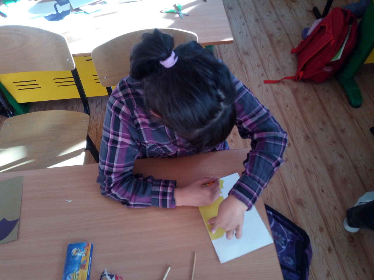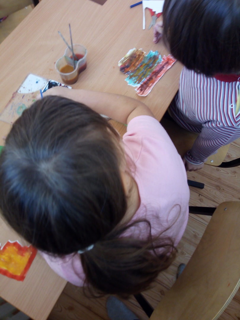 Екатерина Ларькова: Дети учились работать в разных видах деятельности: рисовать красками, занимались вырезанием, учились склеивать части поделки. И, как только появились первые листики желтых и оранжевых тонов, выполненные детишками, мы почувствовали, что осень пришла!