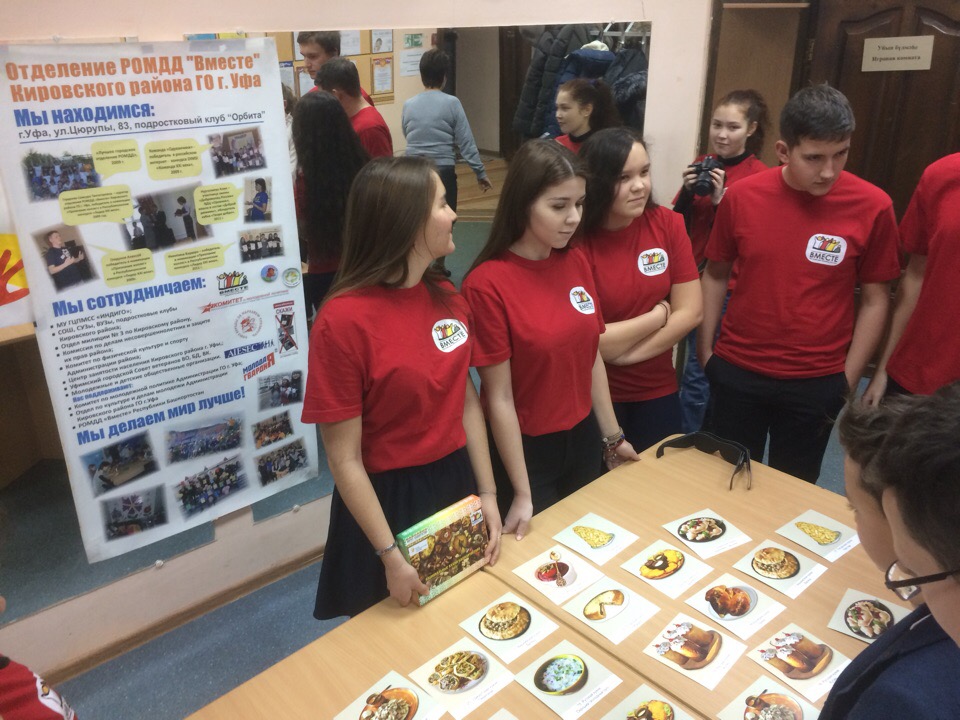 21 ноября 2018 года Волонтерскому центру «Орбита» исполнилось 10 лет! С 2008 года в подростковом клубе «Орбита» создалась ячейка Регионального молодежного добровольческого движения «Вместе» РБ. Сегодня - это уже большой и мощный волонтерский центр «Орбита». В честь дня рождения был организован слет волонтерских отрядов Кировского района «Вместе-здорово!», который объединил 70 подростков -волонтеров подростковых клубов «Орбита», «Прометей», «Аврора» и гимназию №158 им. М. Карима, лицей №160 и СОШ №126.  письма. На слете волонтёрами РОМДД «Вместе», студентками 2 курса направления «Начальное образование» БГПУ им. М. Акмуллы г. Уфы Дарьей Бакулевой, Маргаритой Мусиной, Ларисой Гришаевой была проведена игра-лото «Национальные кухни Башкортостана». Игра  входит в проект «Настольные игры о Родине» (руководитель проекта «Настольные игры о Родине» РОМДД «Вместе» Республики Башкортостан — к. п. н., доц. кафедры теорий и методик начального образования БГПУ им. М. Акмуллы Савельева Е.А.)  и предоставляет возможность знакомства с культурным наследием нашей Родины при обеспечении доступа к играм лиц с нарушениями зрения. Проект проходит с использованием гранта Президента Российской Федерации на развитие гражданского общества, предоставленного Фондом президентских грантов.  В играх-лото приняло участие 33 человека, из них  12 человек с нарушением зрения.