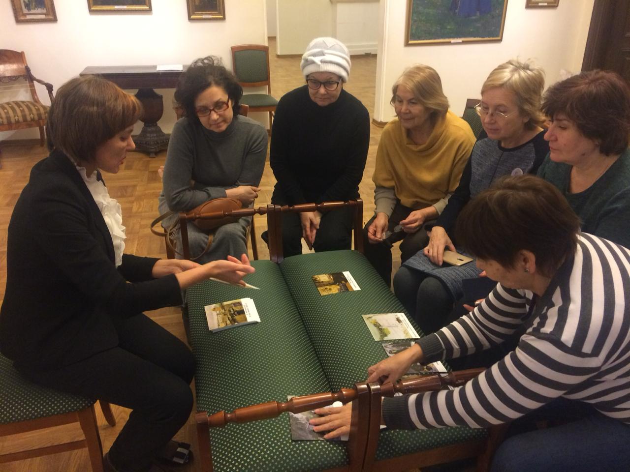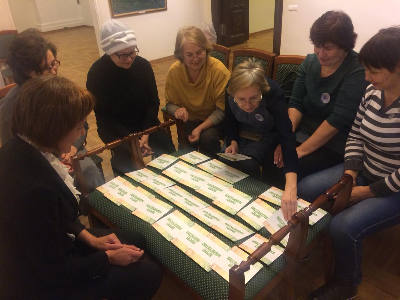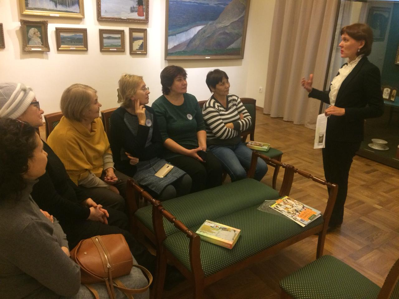 24 ноября 2018 года руководитель проекта, к.п.н., доцент кафедры ТиМНО БГПУ им. М. Акмуллы Екатерина Савельева организовала  экскурсию по музею им. М. В. Нестерова и провела обучение волонтеров "серебряного возраста" методике проведения игр-лото - арт-лото "Истоки коллекции БГХМ им. М.В Нестерова" (авторы-составители Екатерина Савельева и Валентина Сорокина) и арт-лото "Живопись Адии Ситдиковой: башкирские мотивы, рожденные кистью" (авторы-составители Екатерина Савельева,  Валентина Сорокина, Клара Аглиуллина) в  БГХМ им. М.В. Нестерова. К команде волонтеров (Самсура Гордеева, Светлана Ермакова, Ирина Зиннатуллина,  Зинфера Гиззатуллина) во время обучения присоединились еще два посетители музея (Светлана Рушанова, Рима Хамидуллина), выразившие желание стать частью команды серебряных волонтеров и распространять лото по библиотекам. Команда проекта познакомилась с правилами проведения лото и  провела игру.