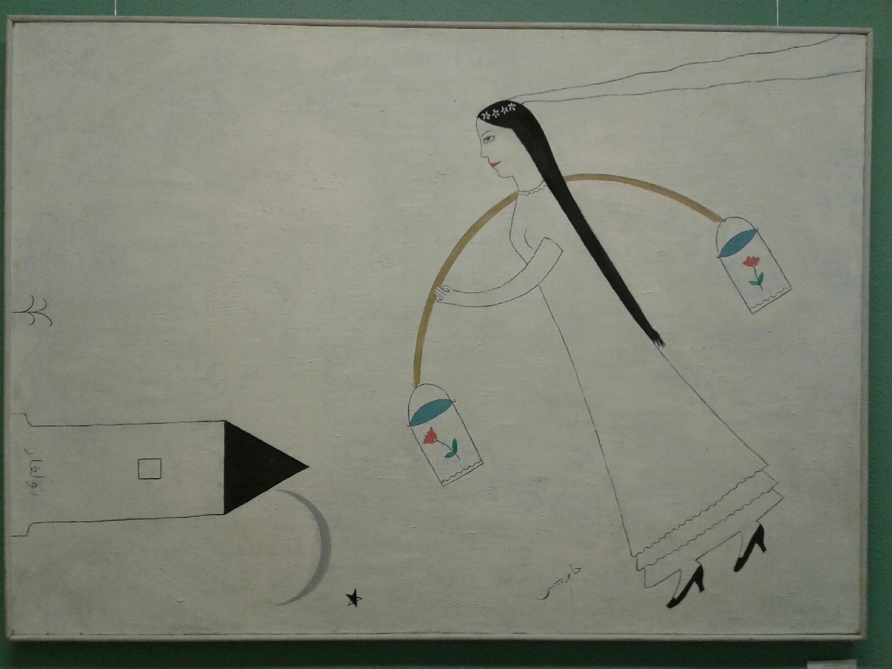 Диана Сабгиянова: Мне понравилась картина Рината Харисова "Путь к роднику" (1989). Она показывает одну из старинных традиций татарского народа.  В день свадьбы молодая невеста ходила за водой. Девушке показывают дорогу к роднику родные (женщины) со стороны жениха. За водой шли с музыкой, песнями, с разукрашенным коромыслом и вёдрами. Невеста и показывающая дорогу женщина одевали самые красивые фартуки и отделялись от других. Изначально, в этом обряде участвовали лишь невеста, но сейчас уже ходит и молодой супруг. Если нет родника, то воду берут из колодца. Хозяйка колодца наполняет вёдра водой и говорит пожелания молодым. На ответ невеста дарит ей подарки. Участники и дети тоже получают подарки. Нести воду нужно аккуратно, не расплескивая по сторонам воду из ведер, держащихся на коромысле, чтобы счастье не расплескать. В доме встречают невесту, ставят вёдра в доме жениха. Водой из ведра всех угощают. Кто пьёт эту воду, молодожёнам даёт деньги.  Так происходит приобщение к родным мужа, к их земле и воде, что имело, помимо ритуального, вполне практическое значение. Жизнь женщины тесно связана с водой: приготовить еду, дом в чистоте содержать, баню истопить, вещи постирать и т.д. В сельской местности до сих пор не всегда встретишь водоснабжение у дома или, тем более, дома, поэтому в первый же день молодой хозяйке показывали дорогу, по которой ей придется ходить каждый день. Этот обряд сохранился и по сей день.