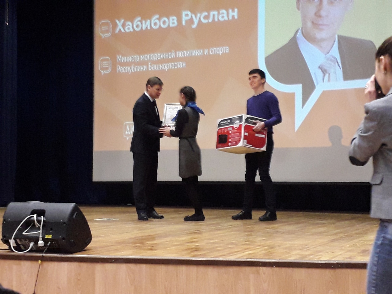 Волонтерский отряд «Палитра» института педагогики ФГБОУ ВО «БГПУ им. М. Акмуллы» под руководством доцента кафедры теории и методик начального образования Екатерины Савельевой за активное участие в республиканском конкурсе программ (проектов), направленных на поддержку студенчества и развитие деятельности молодежных клубов и центров на базе образовательных организаций высшего и профессионального образования Республики Башкортостан, проводимом Министерством молодежной политики и спорта Республики Башкортостан, 23 января 2019 года награжден дипломом 2 степени в номинации «Развитие добровольческой (волонтерской) деятельности» и поощрен ценным призом – МФУ Pantum. Волонтеры отряда «Палитра» ИП, студенты 3 курса направления «Начальное образование»  Диана Акбутина и Ильназ Сафин приняли активное участие в мероприятии.