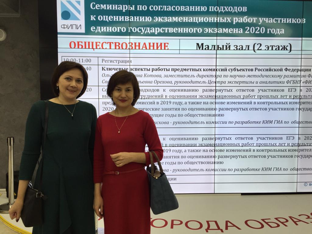 13 февраля 2020 года преподаватели кафедры права и обществознания – к.пол.н., доцент А.Н. Скалина и к.соц.н., доцент Л.Ф. Зайнетдинова – приняли участие в семинаре для председателей региональных предметных комиссий, задействованных при проверке ответов на задания с развёрнутым ответом экзаменационных работ участников государственной итоговой аттестации в 2020 году по обществознанию. Семинар традиционно состоялся в Федеральном институте педагогических измерений, г. Москва. В работе семинара участники получили возможность познакомиться с опытом работы предметных комиссий по обществознанию других регионов, задать вопросы председателю предметной комиссии по наиболее сложным моментам в работе, согласовать подходы к проверке и оценке экзаменационных заданий по обществознанию.