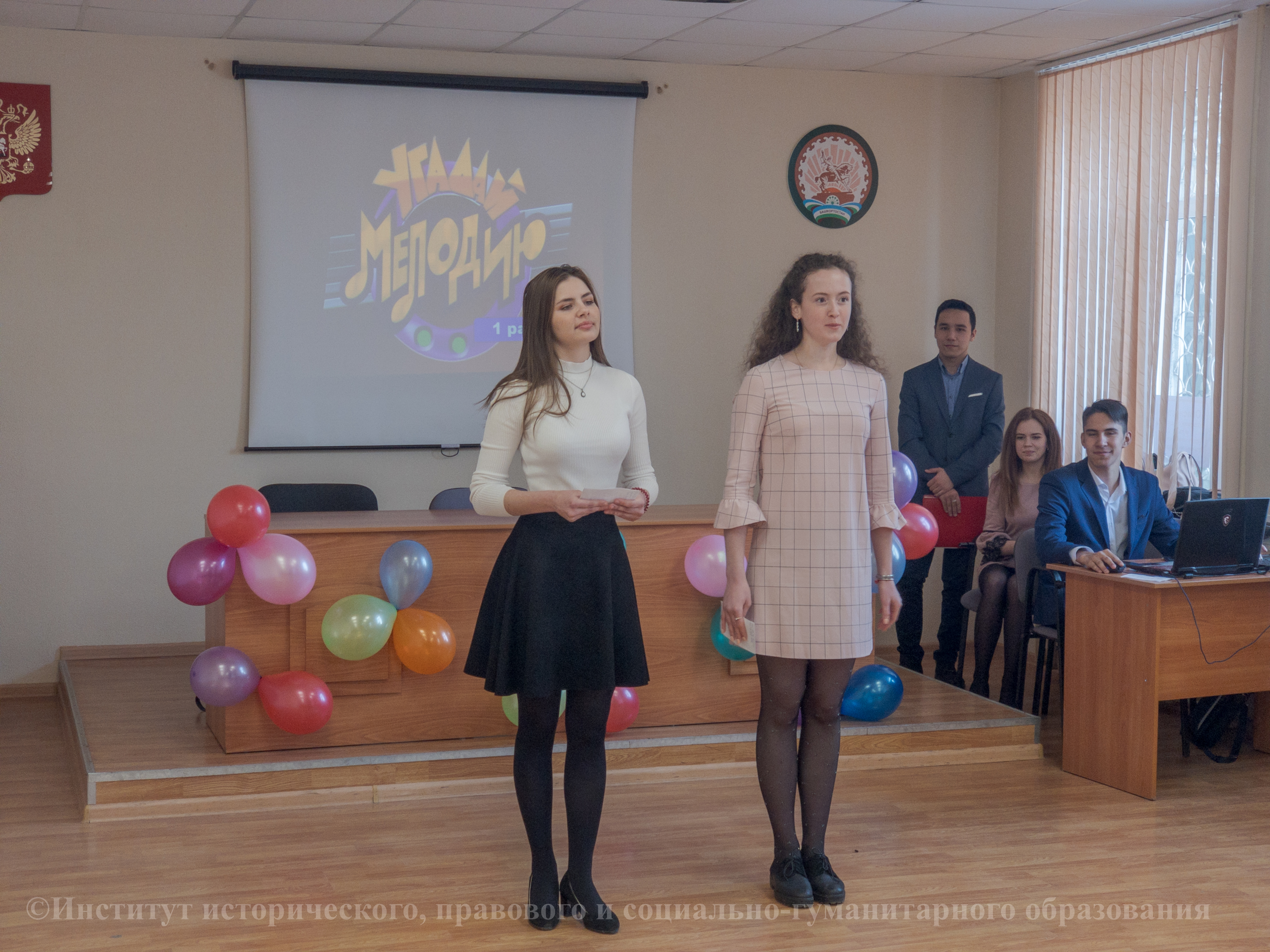 Данное мероприятие проходило в рамках учебной дисциплины "Введение в педагогическую деятельность" (ст. преп. Ахмерова З.Р.) и в форме интеллектуально-музыкальной игры "Угадай мелодию", где участникам были предложены песни советских и современных исполнителей.