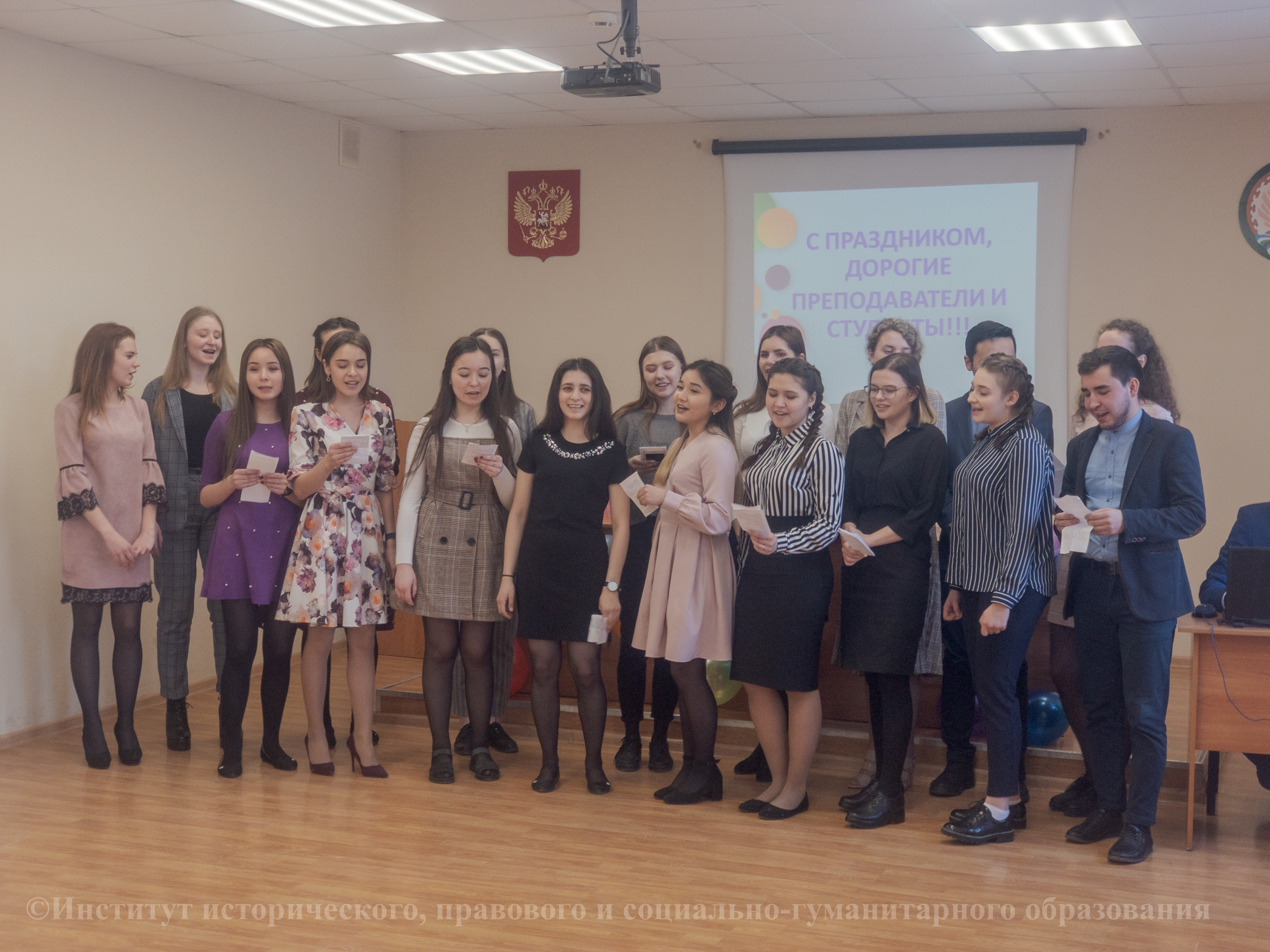 После мероприятия ребята поздравили всех студентов, сотрудников и преподавателей Института исторического, правового и социально-гуманитарного образования с 23 февраля и 8 марта.