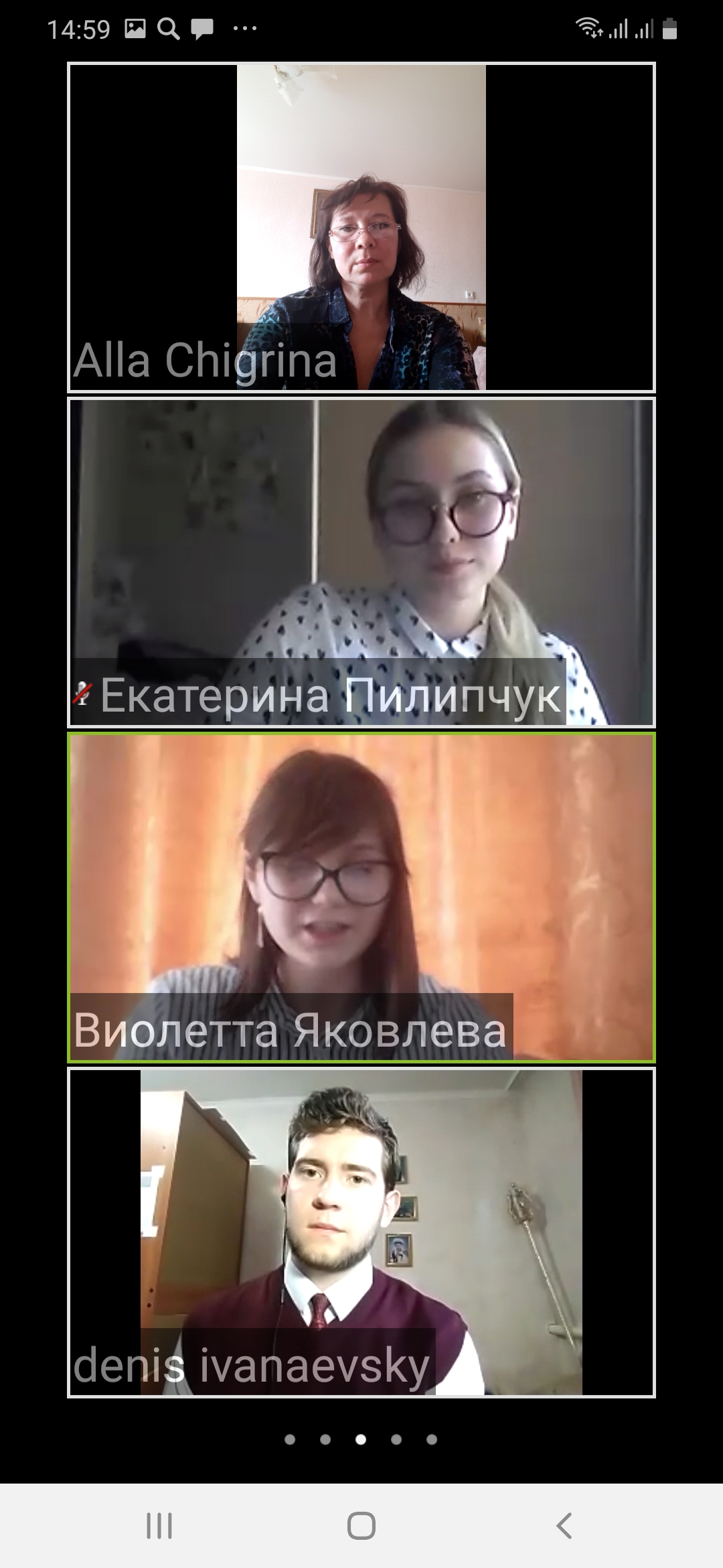 Началось обсуждение с выступления студента 4 курса Института исторического, правового и социально-гуманитарного образования БГПУ им. М.Акмуллы Дениса Иванаевского на тему «Эволюция фильмографии о Великой Отечественной войне», был дан довольно полный анализ и периодизацию художественного кино о войне. Продолжила обсуждение студентка того же института Ирина Кузнецова, затронув такой аспект, как «Кино – средство патриотического воспитания». Эта тема, а также проблема современной военной кинематографии вызвали большой интерес и привела к активной дискуссии, рамках которой выступили студентки юридического факультета Стерлитамакского филиала БГУ Ангелина Зайкина, Екатерина Пилипчук и Виолетта Яковлева. Много было сказано о роли военных кинорепортеров в сохранении истории Великой Отечественной войны и создании уникальной источниковой базы. Студент ИИПСГО Егор Савельев поделился своими соображениями о плюсах и минусах современных фильмов о войне. Весьма полемично прозвучало сообщение сотрудника ООО «Археологический научно-производственный центр» Руслана Яминова «Образ ВОВ в современном российском кинематографе как часть культурной политики», подготовленное совместно с доцентом БГАУ С.А.Яминовой. В качестве соведущих онлайн встречи выступили доцент кафедры Всеобщей истории и культурного наследия А.И.Чигрина и доцент Стерлитамакского филиала БГУ Е.С.Косых.