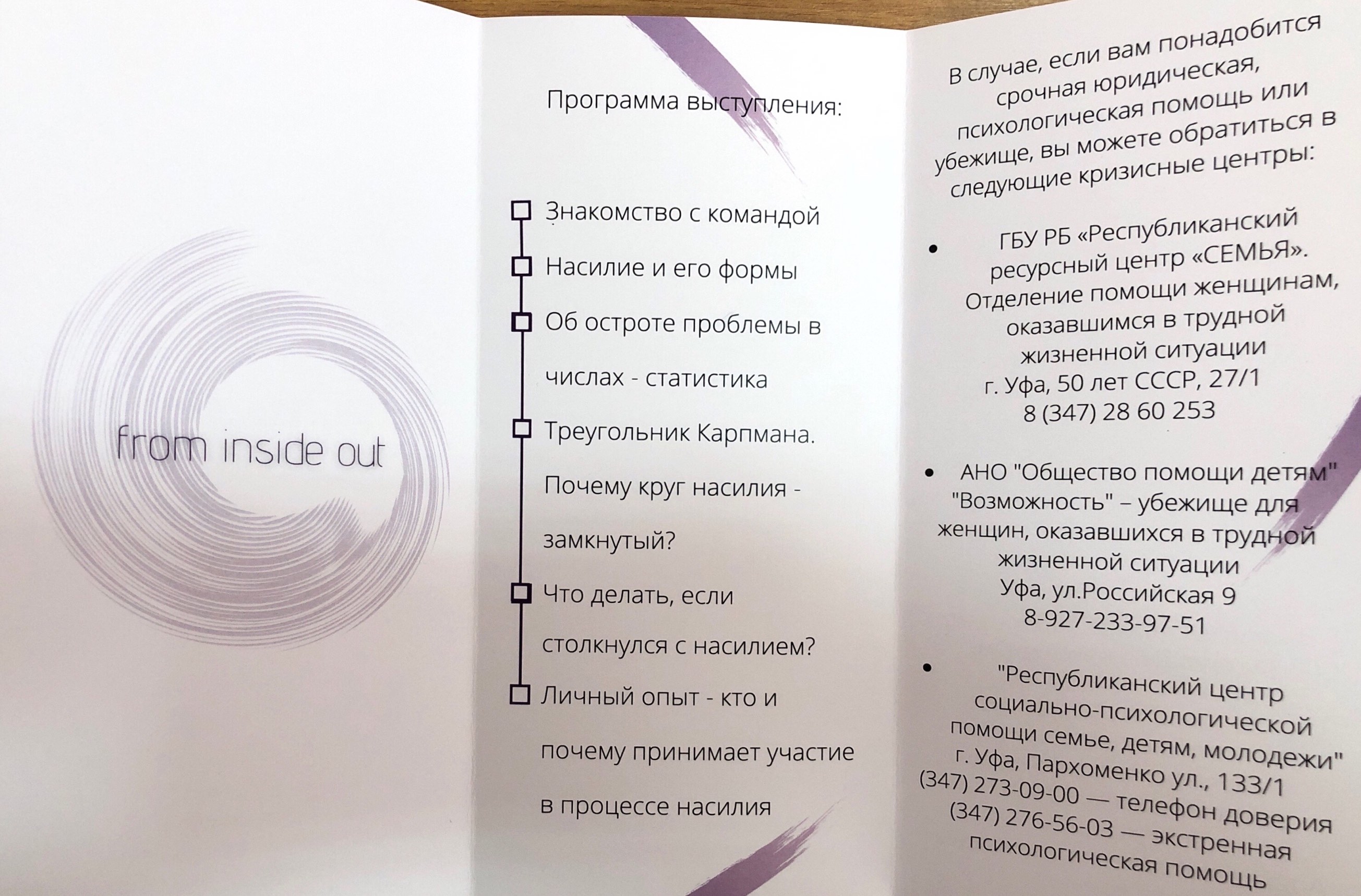 Лекция была подготовлена и проведена спикерами из АНО «Платформа по реализации социально значимых программ и проектов» при поддержке Фонда президентских грантов, и направлена на повышение осведомленности студентов о проблемах насилия, предложения конкретной методики выхода из непростых жизненных ситуаций, а также способов ее предотвращения и профилактики.
