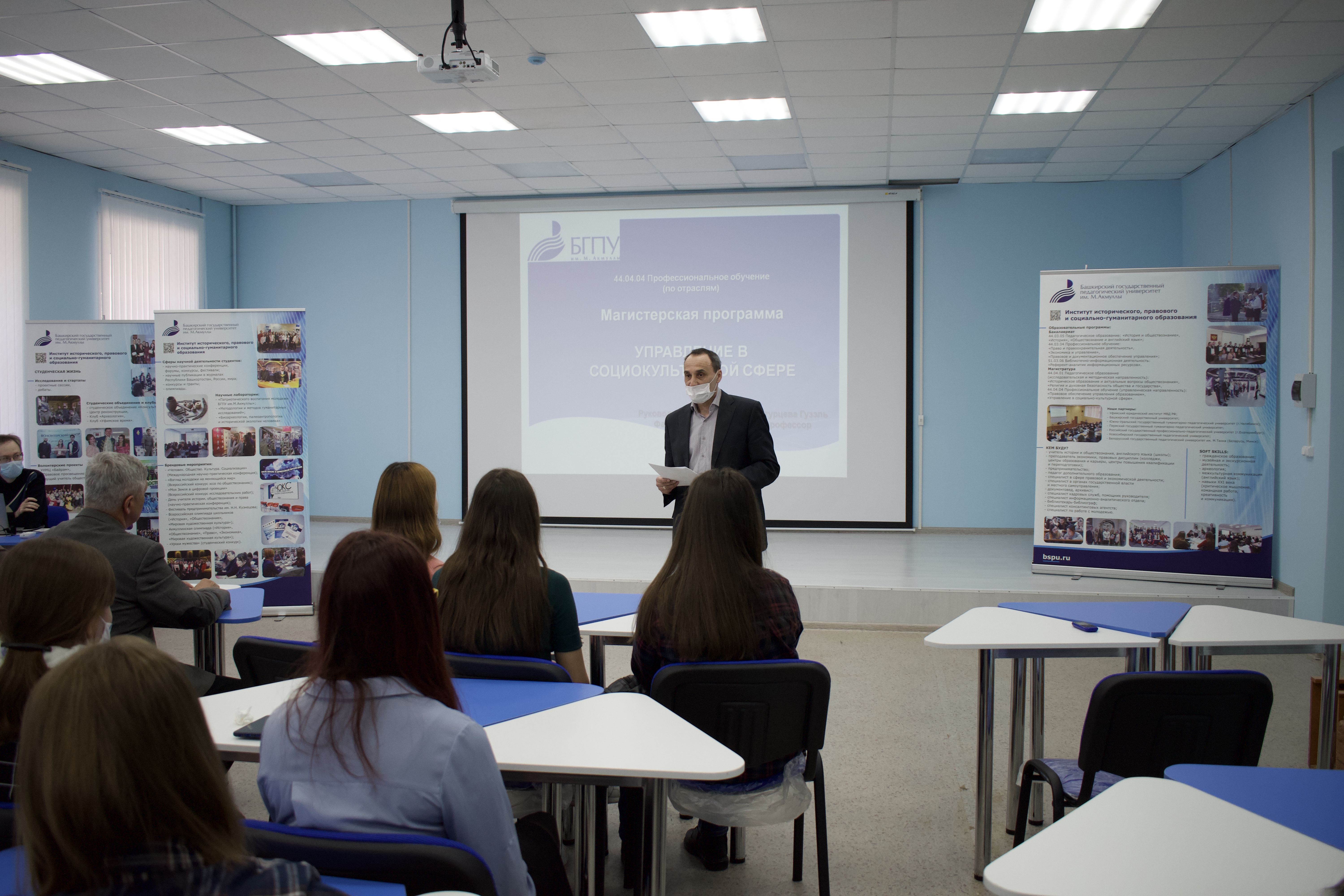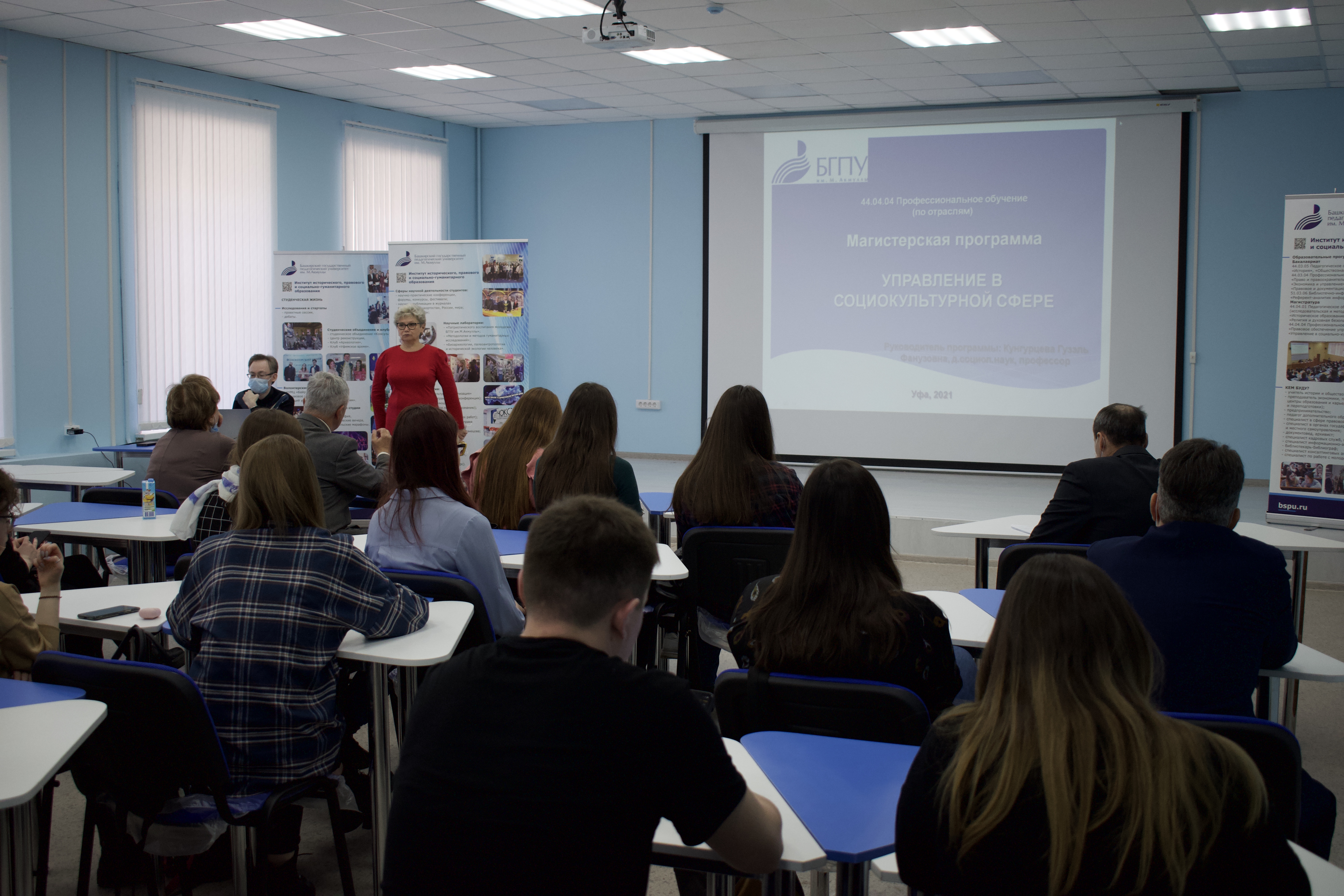 29 марта 2021 г. в стенах Института исторического, правового и социально-гуманитарного образования прошла презентация магистерских программ для выпускников бакалавров. Аудитория, в которой проходило мероприятие, с трудом вместила всех пришедших, что, несомненно, подтвердило высокий интерес молодых людей к продолжению обучения в Башкирском государственном педагогическом университете им. М.Акмуллы.