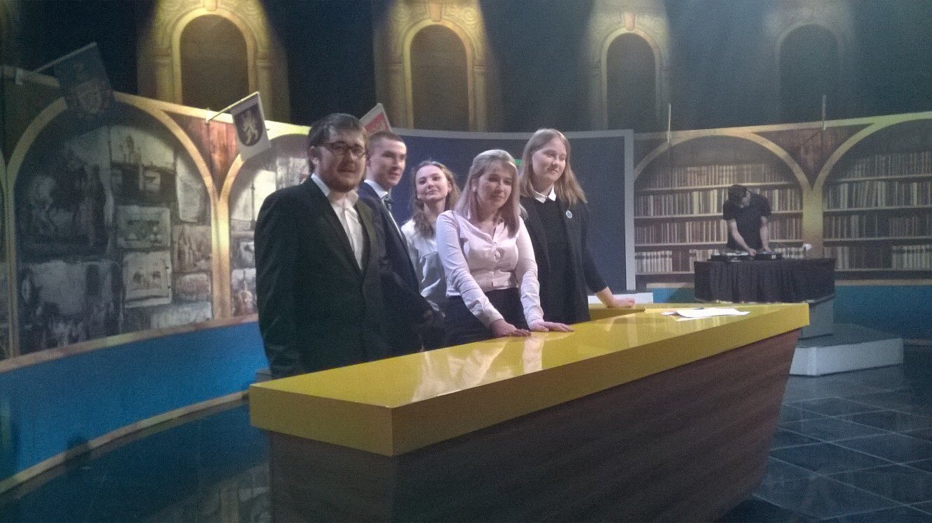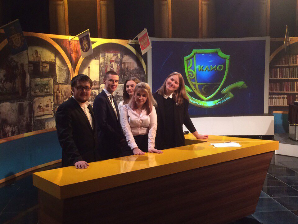 Сегодня на студии телеканала БСТ прошел полуфинал телевизионной интеллектуальной игры «КЛИО» (Клуб Любителей Истории Отечества), на котором наш университет представляли студенты первого, второго и третьего курсов Института исторического и правового образования: Новожилова Мария, Мавлютова Нурия, Гумерова Адель, Галимзянов Ильгиз и Мусин Рамис.