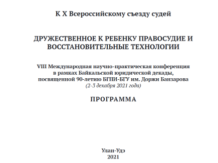Преподаватели и студенты Института исторического, правового и социально-гуманитарного образования приняли участие в работе  VII Международной научно-практической конференции «ДРУЖЕСТВЕННОЕ К РЕБЕНКУ ПРАВОСУДИЕ И ВОССТАНОВИТЕЛЬНЫЕ ТЕХНОЛОГИИ», которая проходит 2-3 декабря 2021 года в рамках Байкальской юридической декады, посвященной 90-летию Бурятского государственного университета им. Доржи Банзарова.