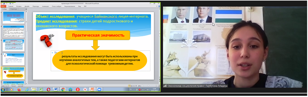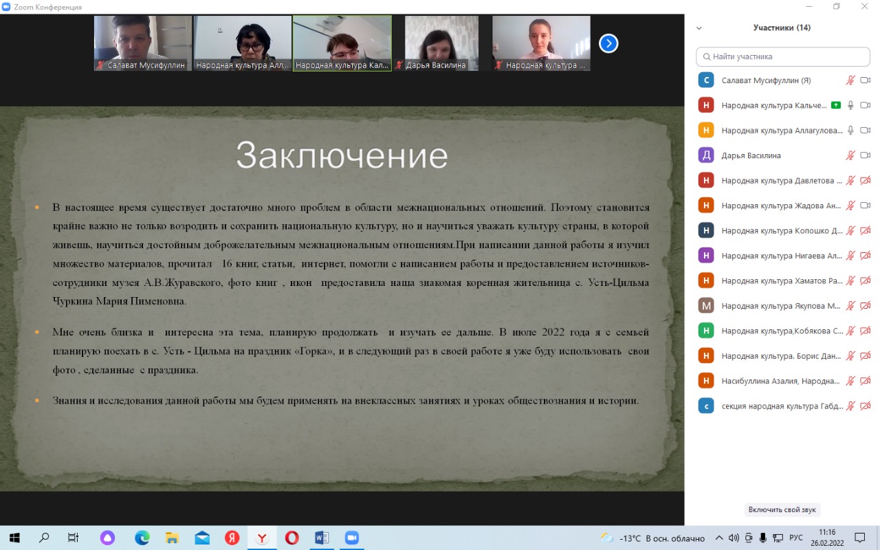 Представленные работы прошли отбор в заочном туре, а 26 февраля 2022 г. в режиме онлайн школьники достойно защитили свои проекты. В каждой секции был определен лауреат, который будет представлять республику в Москве, победители в секциях.