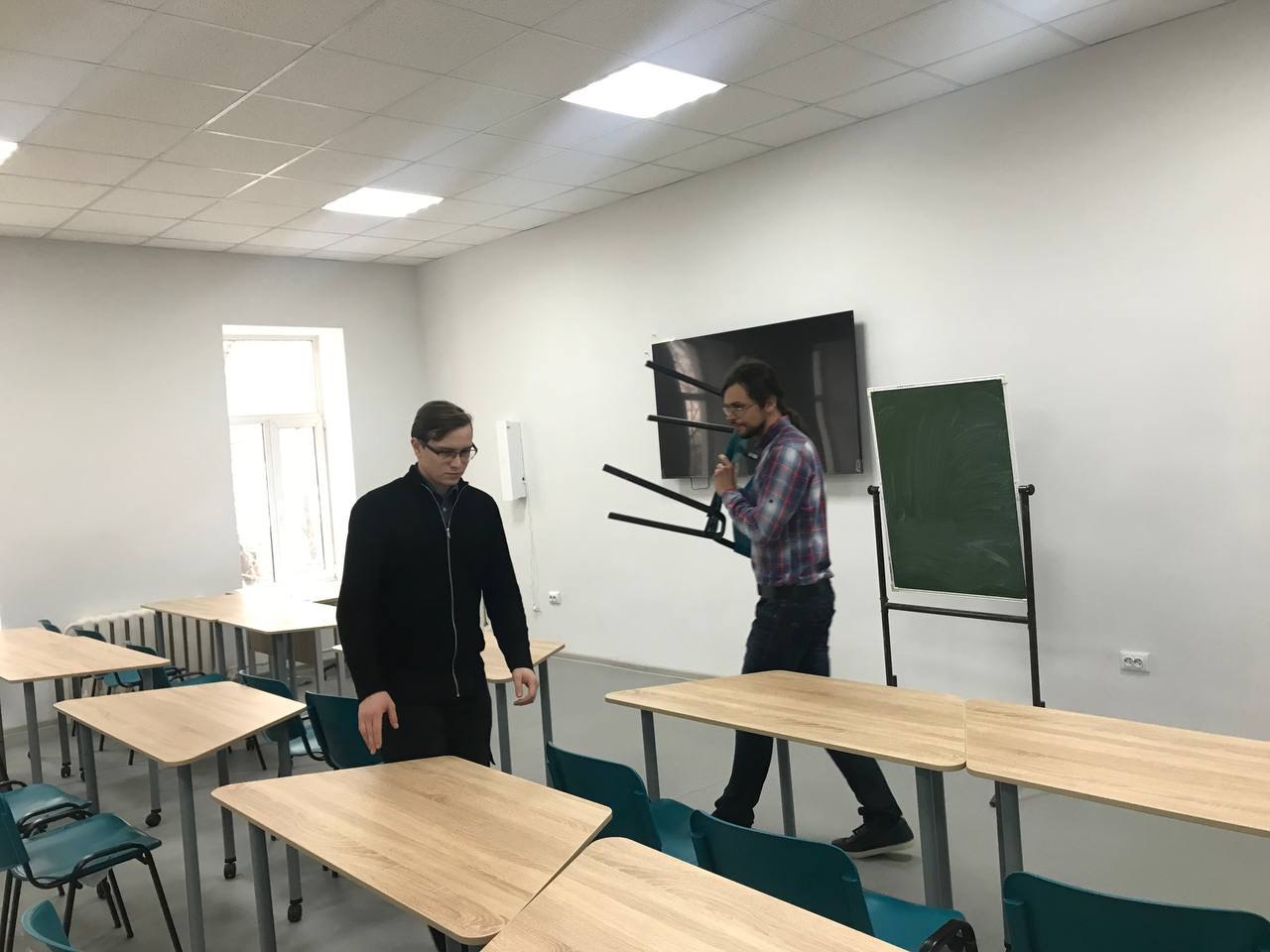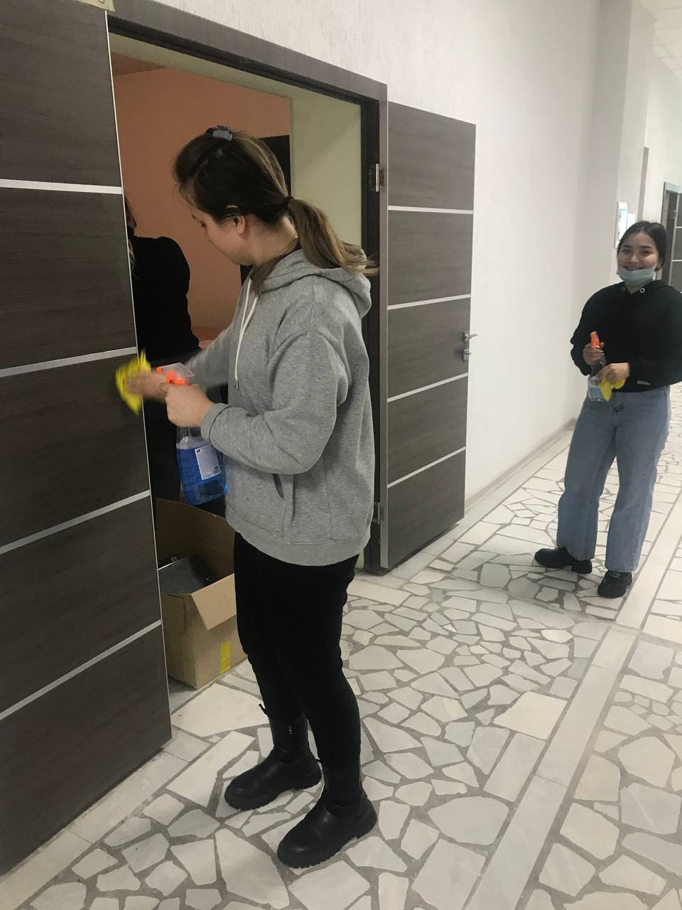 Вся территория была поделена на участки, которые были распределены между группами. Все вместе дружно наводили порядок как вокруг, так и внутри института.