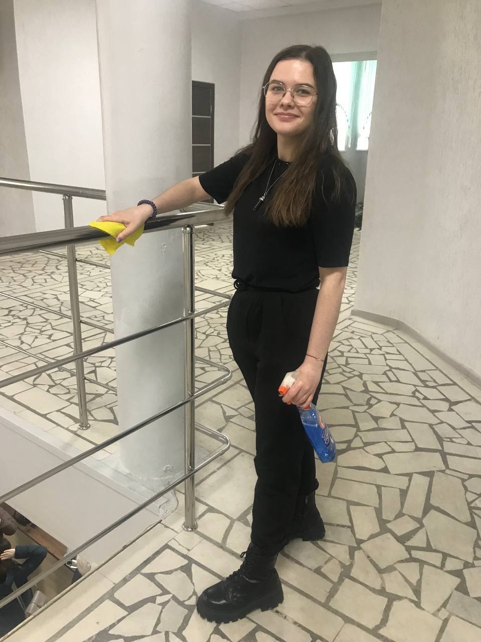 Вооружившись необходимым инвентарем, ребята и преподаватели с удовольствием приводили в порядок территорию института: собирали мусор, раскидывали снег, мыли парты, стулья и шкафы. Общими усилиями за несколько часов 4 учебный корпус преобразился: везде чисто и красиво.