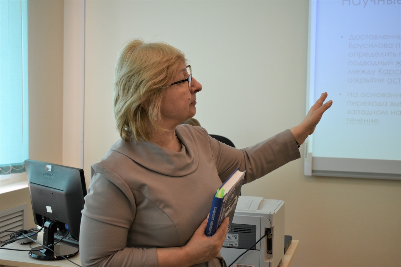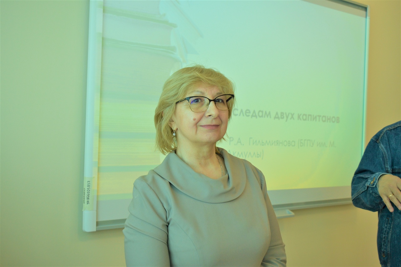 Доцент кафедры, кандидат исторических наук Римма Аскаровна Гильмиянова (руководитель образовательной программы «Референт аналитик информационных ресурсов») назвала свое выступление образно: «По следам двух капитанов». Используя различные виды ресурсов, она провела экскурс в события начала ХХ века, посвященные освоению Северного морского пути. Участники встречи с интересом слушали о трагическом дрейфе шхуны «Святая Анна» во льдах Карского моря, штурманом которой был уроженец Уфы Валериан Альбанов. Именно он стал прототипом романа В. Каверина «Два капитана», а память о нем увековечена открывшимся в 2021 году в Уфе музеем полярников (недаром музей носит его имя). После своего выступления Р.А. Гильмиянова ответила на вопросы присутствовавших на встрече.
