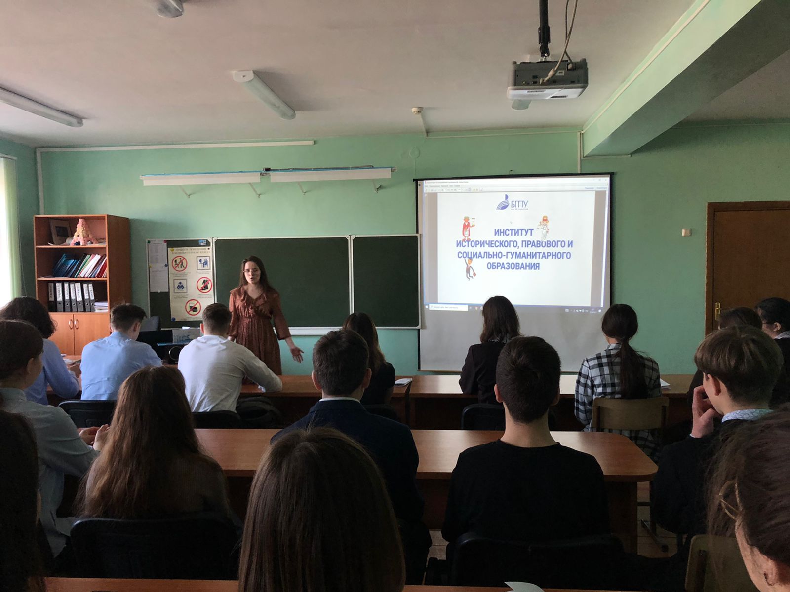 15 апреля 2022 г. в Гимназии № 1 г. Туймазы прошло прошло профориентационное мероприятие для старшеклассников – будущих абитуриентов 2022 года. Перед учащимися 10-11 классов выступила Бакиева Ляйсан Радиковна, магистрант 2 курса Института исторического, правового и социально-гуманитарного образования Акмуллинского университета, она же учитель истории и обществознания этой школы.