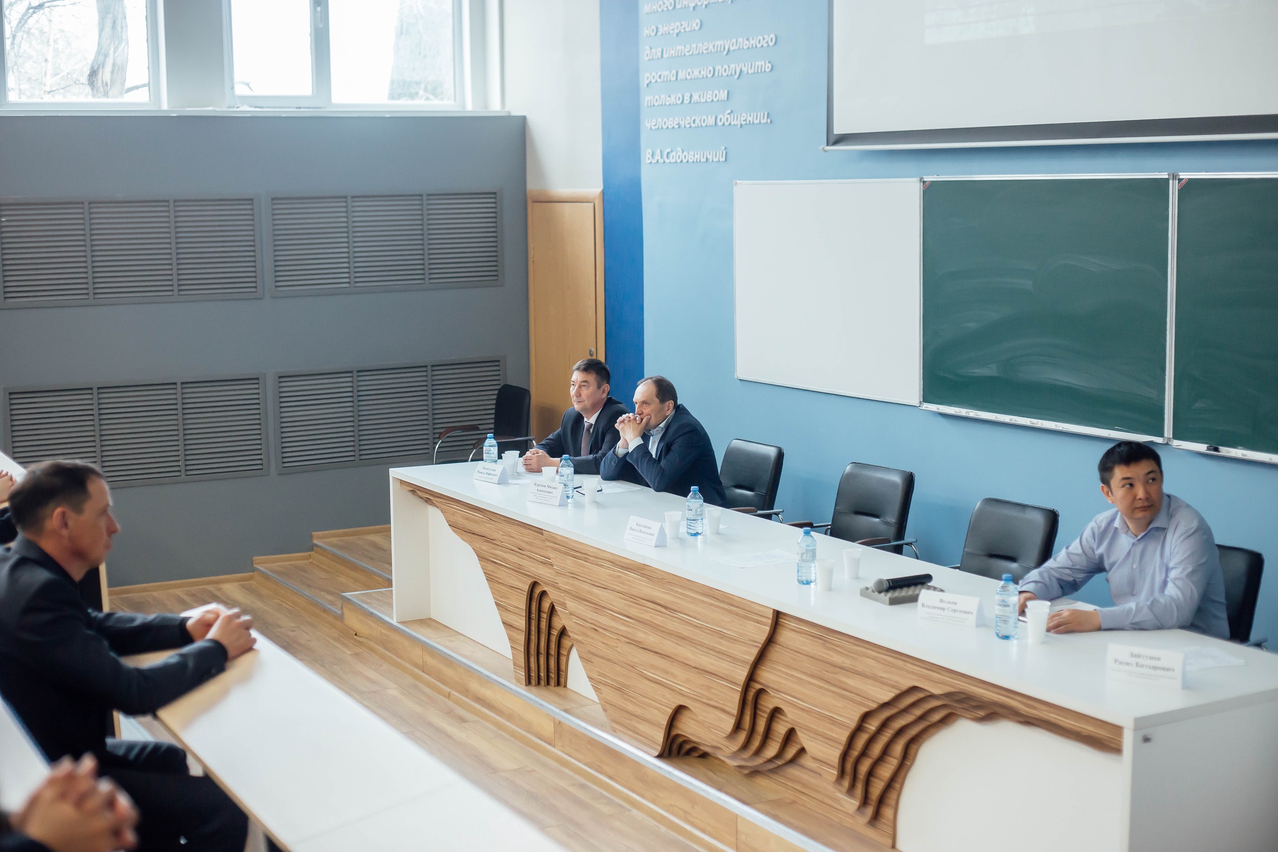 В именной аудитории Садовничего председатель совета поискового движения России в Башкирии Владимир Волков провел урок под названием «Без срока давности. Суды истории». Слушателями стали студенты Акмуллинского университета, обучающиеся кадетских классов общеобразовательных учреждений Уфы и Уфимского района.