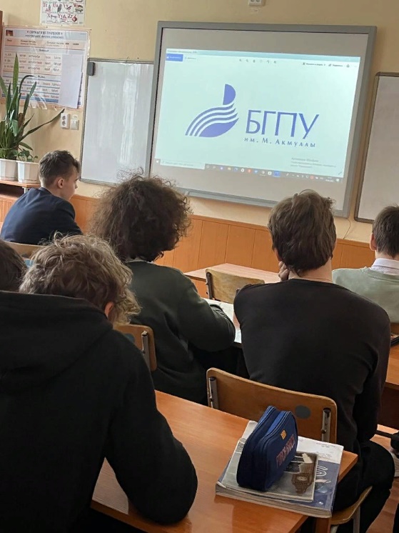18 апреля 2022 года на базе Физико-математического лицея №93 г. Уфы прошло профориентационное занятие с учащимися 11 классов. Организатором выступила Виктория Левоновна Сабитова, учитель обществознания и истории, магистрант Института исторического, правового и социально-гуманитарного образования. На занятии выпускники 2022 г. узнали о направлениях подготовки и о специфике поступления в Акмуллинский университет.